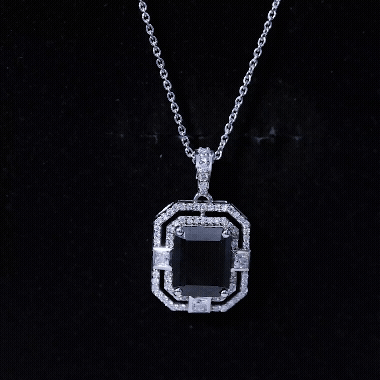 Vintage Inspired Octagon Created Black Diamond Pendant with Moissanite
