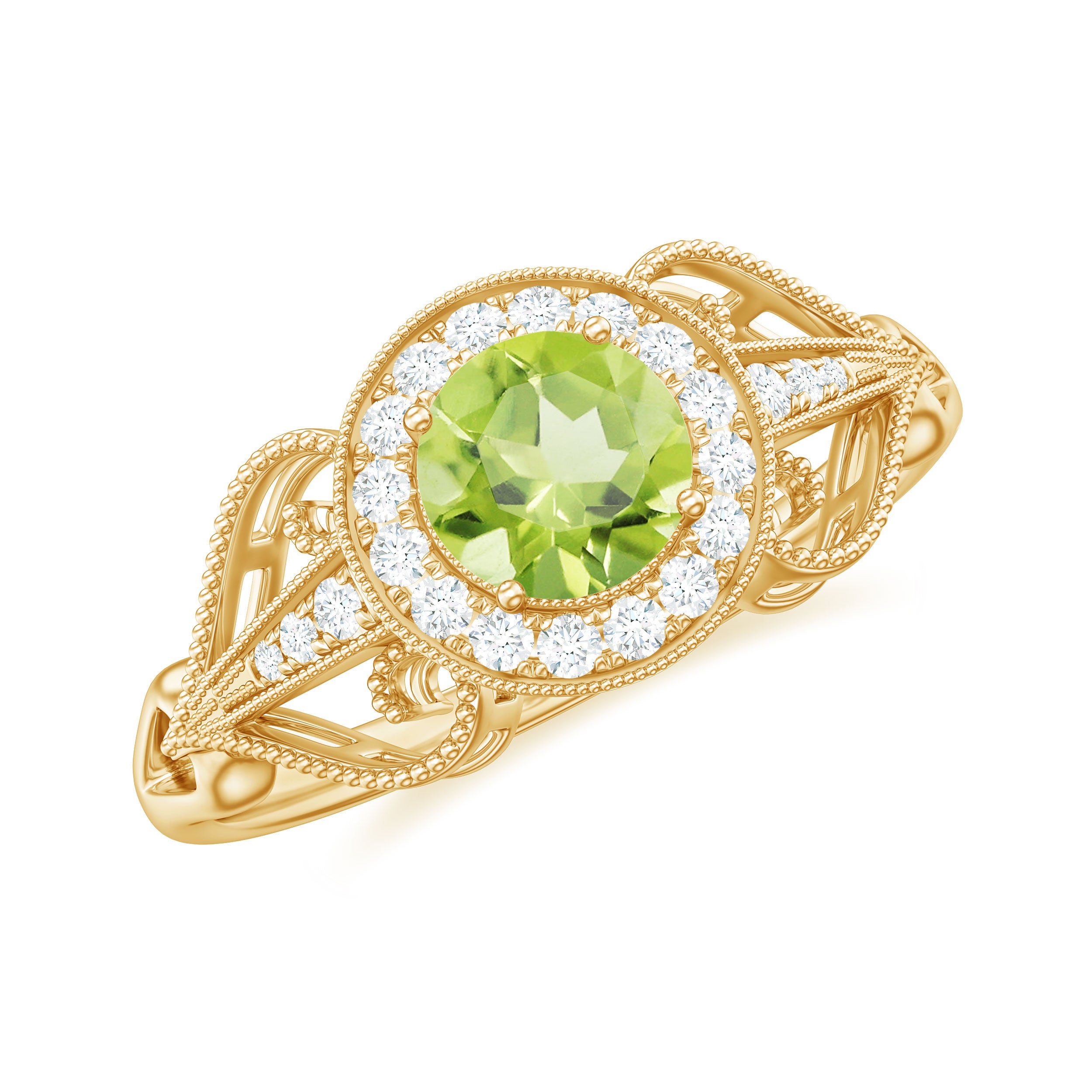 Bring some sparkle to your day with this statement peridot engagement ring. Crafted in gold, this ring features a beaded design and is accented with Diamond stones and a round peridot in the center. Perfect for making her feel special and loved, this peridot engagement ring is sure to make a lasting impression.