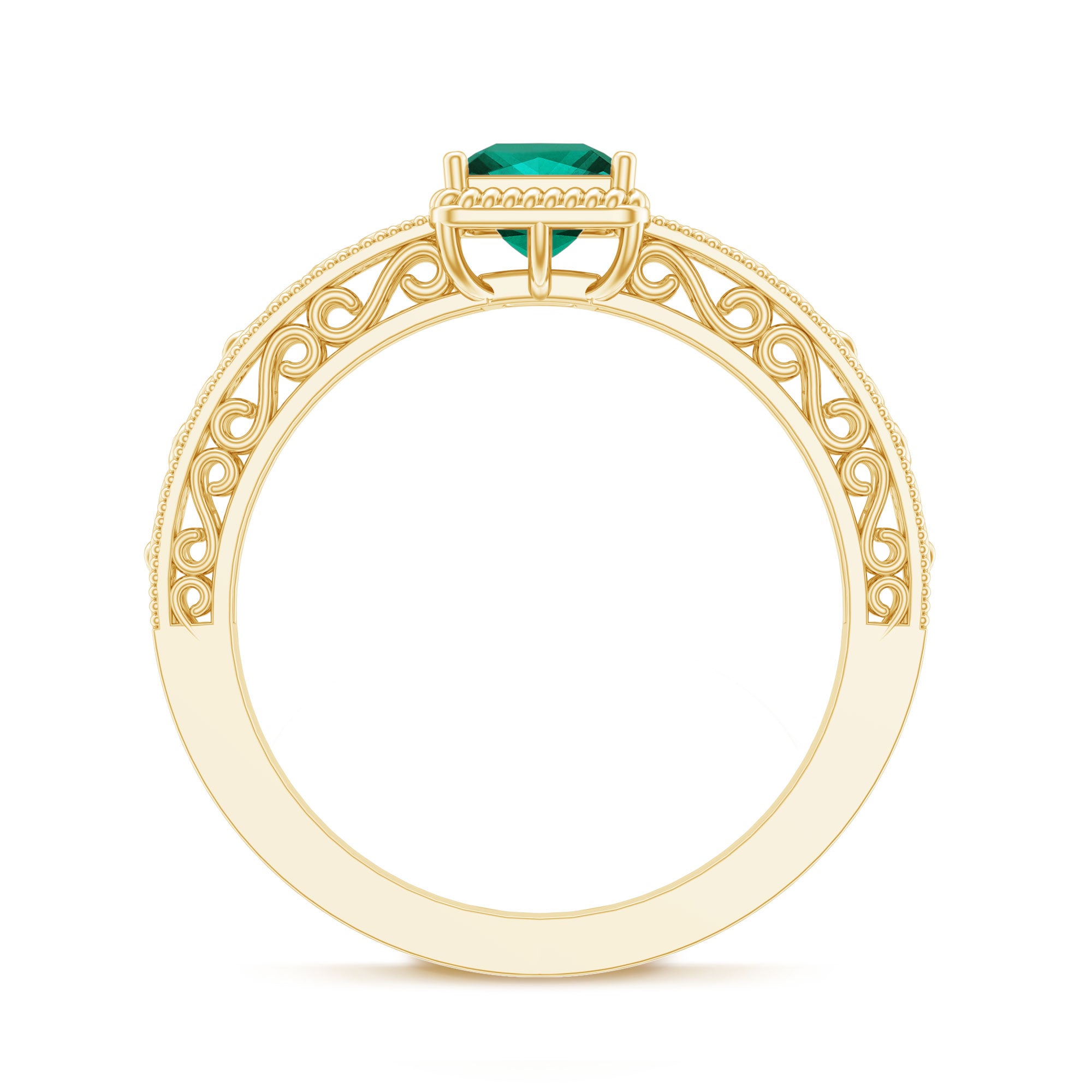 This mesmerizing Promise Ring is a symbol of love, trust and endless devotion, designed for those who appreciate timeless elegance. Handcrafted with perfection and attention to detail, this Vintage Style Ring is adorned with a 5 mm Princess Cut Lab Created Emerald, radiating a deep green hue that symbolizes growth, hope and lasting affection. The Lab Emerald is set within a Twisted Rope frame, adding an extra layer of vintage charm and handcrafted appeal. Surrounding the centerpiece, delicate Filigree patterns and Beaded detailing over the Band wrap the finger in subtle sophistication. Perfect for making a heartfelt declaration of love, this Lab Grown Emerald Ring balances boldness and grace effortlessly. The combination of classic design with modern craftsmanship ensures that this Princess Cut Emerald Ring will become a trendsetter for generations to come. Whether given as a promise of commitment, a meaningful gift or a piece to cherish forever, this Filigree Ring stands as a unique and stylish expression of enduring love.