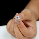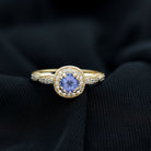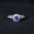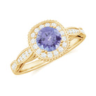 Vintage Inspired Round Tanzanite Engagement Ring with Diamond Halo