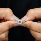 This exquisite Antique Engagement Ring is designed to capture everyones attention. Its centerpiece features a stunning Round Shape Tanzanite gemstone, elegantly set in a Double Prong Setting and accented by sparkling Diamond stones and delicate Milgrain Details.