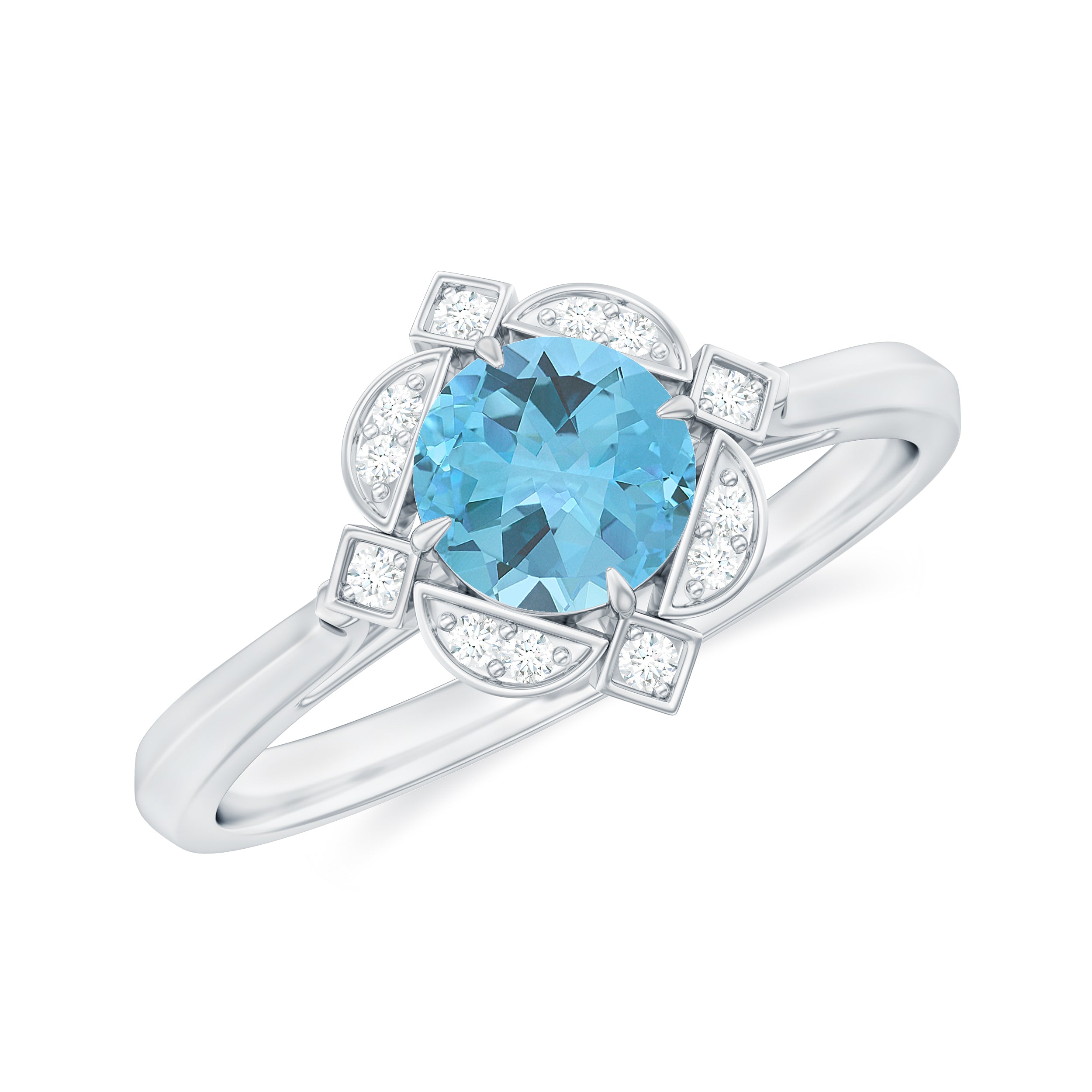 Vintage Inspired Sky Blue Topaz and Diamond Engagement Ring