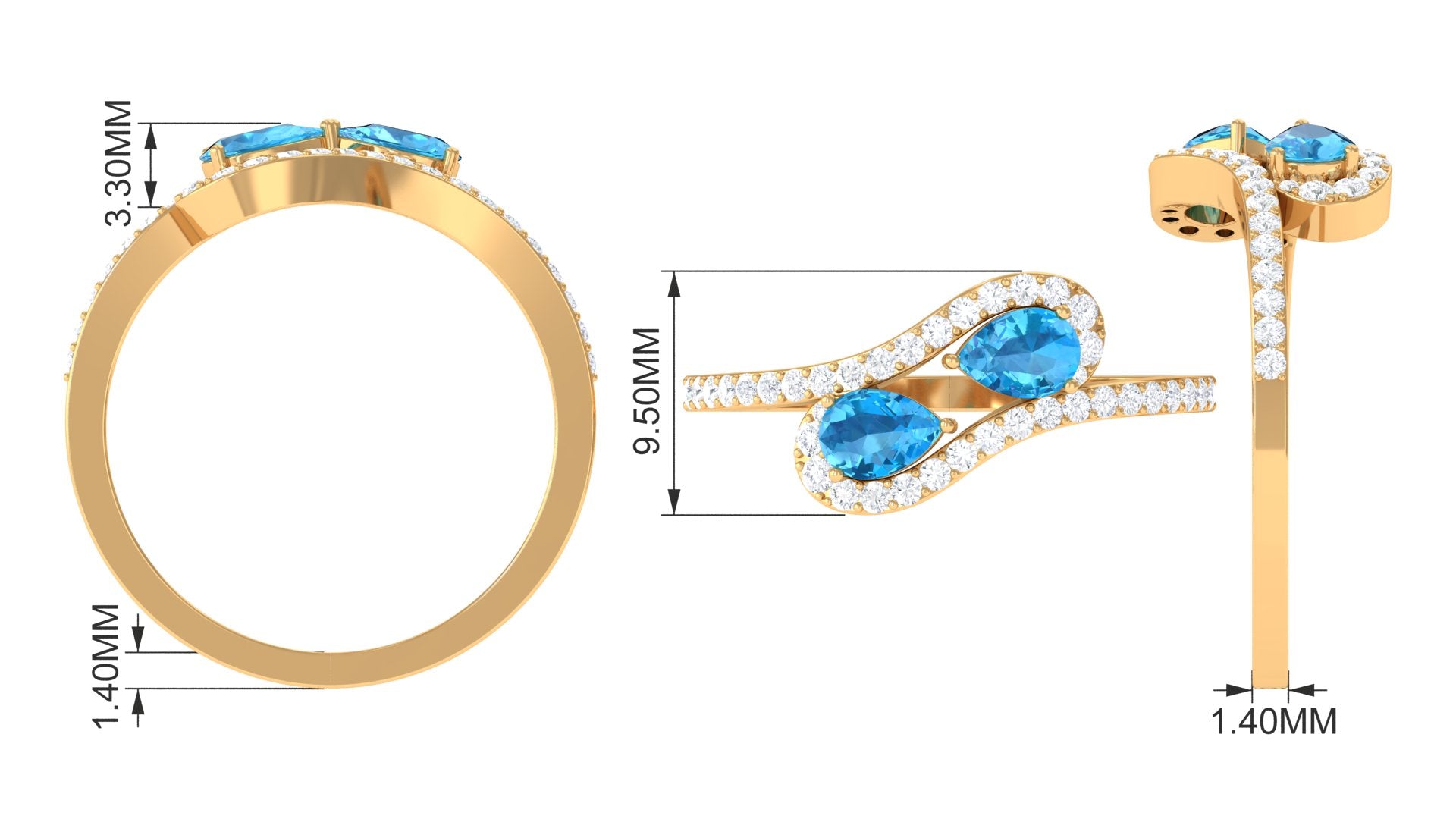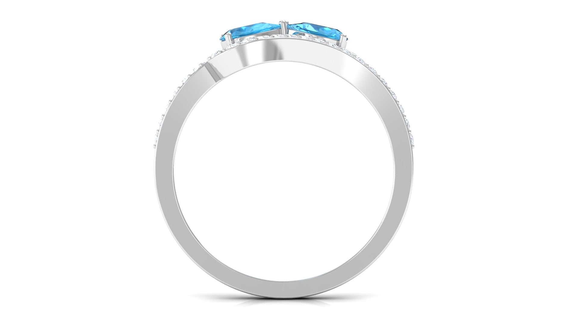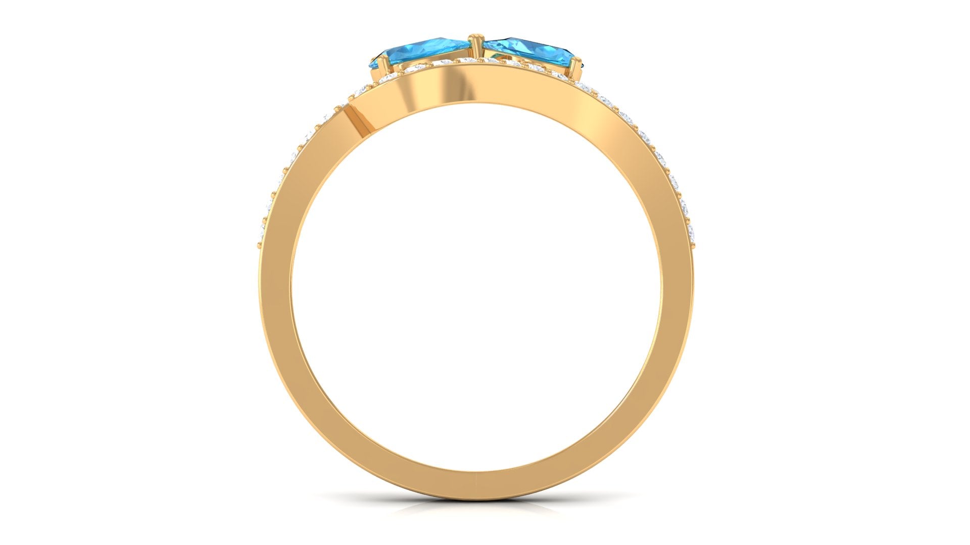 Indulge in vintage charm with this Two Stone Bypass Ring, showcasing stunning Swiss blue topaz with Diamond gemstones for a classic look.