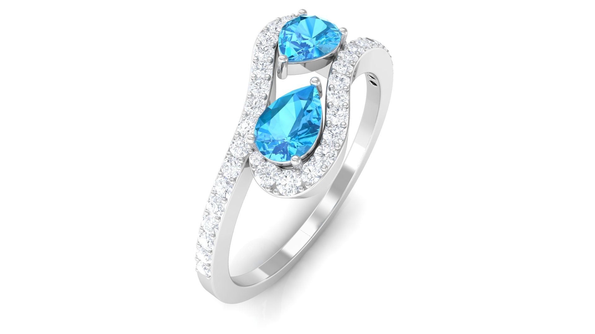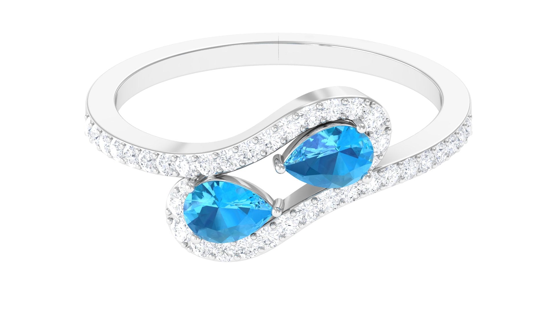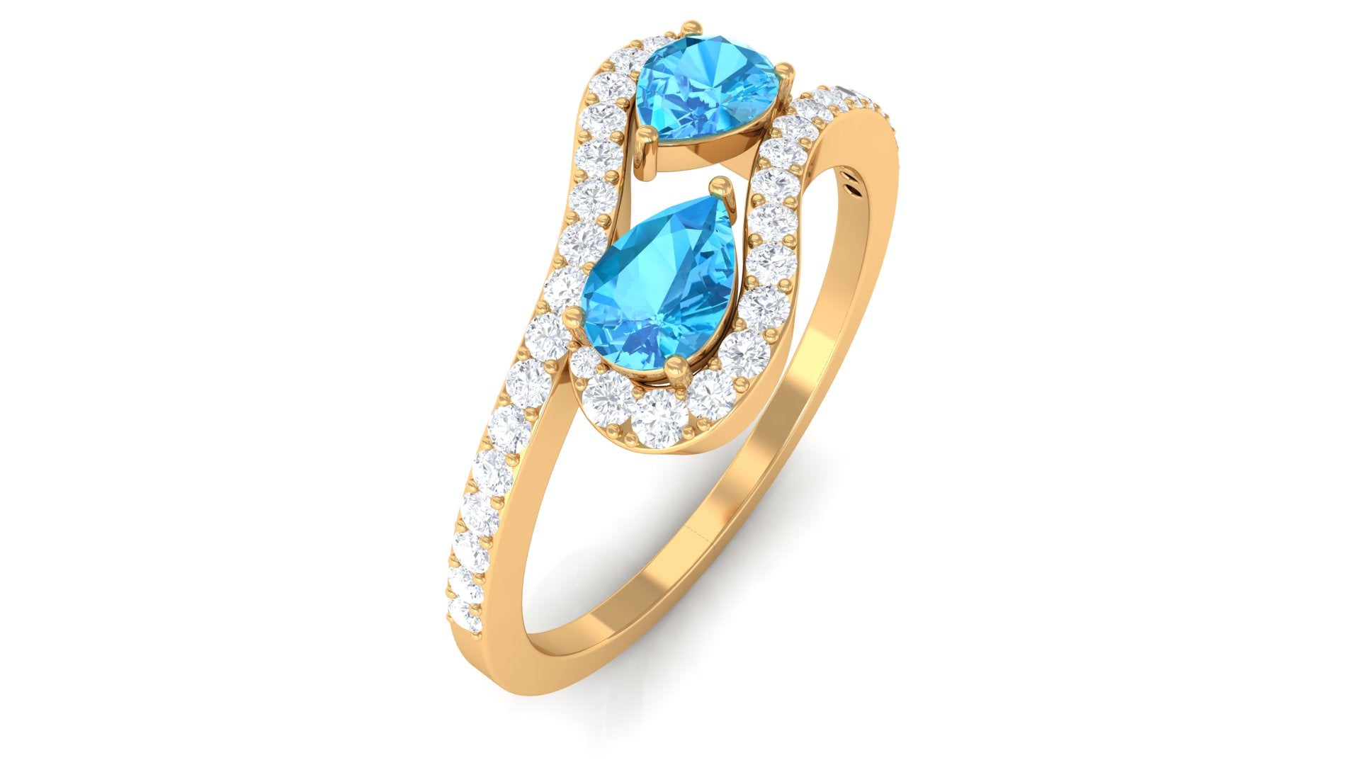 Indulge in vintage charm with this Two Stone Bypass Ring, showcasing stunning Swiss blue topaz with Diamond gemstones for a classic look.