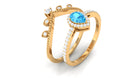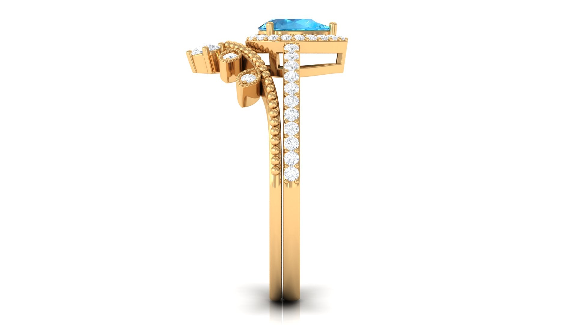 Vintage Inspired Swiss Blue Topaz Teardrop Wedding Ring Set with Diamond
