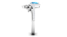 Leave her in awe with your impeccable choice of this exquisite ring set. The bridal set features a 5X7 mm pear-cut Swiss Blue Topaz, delicately held in a prong setting. The ring set is enhanced by a halo of round, gleaming Diamond stones that encircle the Swiss Blue Topaz, adding a captivating sparkle. The chevron band, adorned with more radiant Diamond stones, beautifully complements the centerpiece. Present her with this remarkable ring set and watch her marvel at its exquisite craftsmanship and timeless elegance.