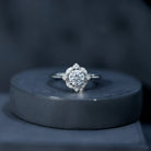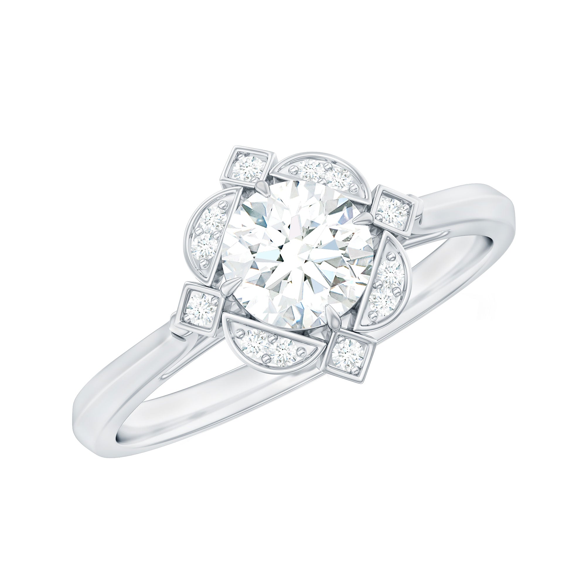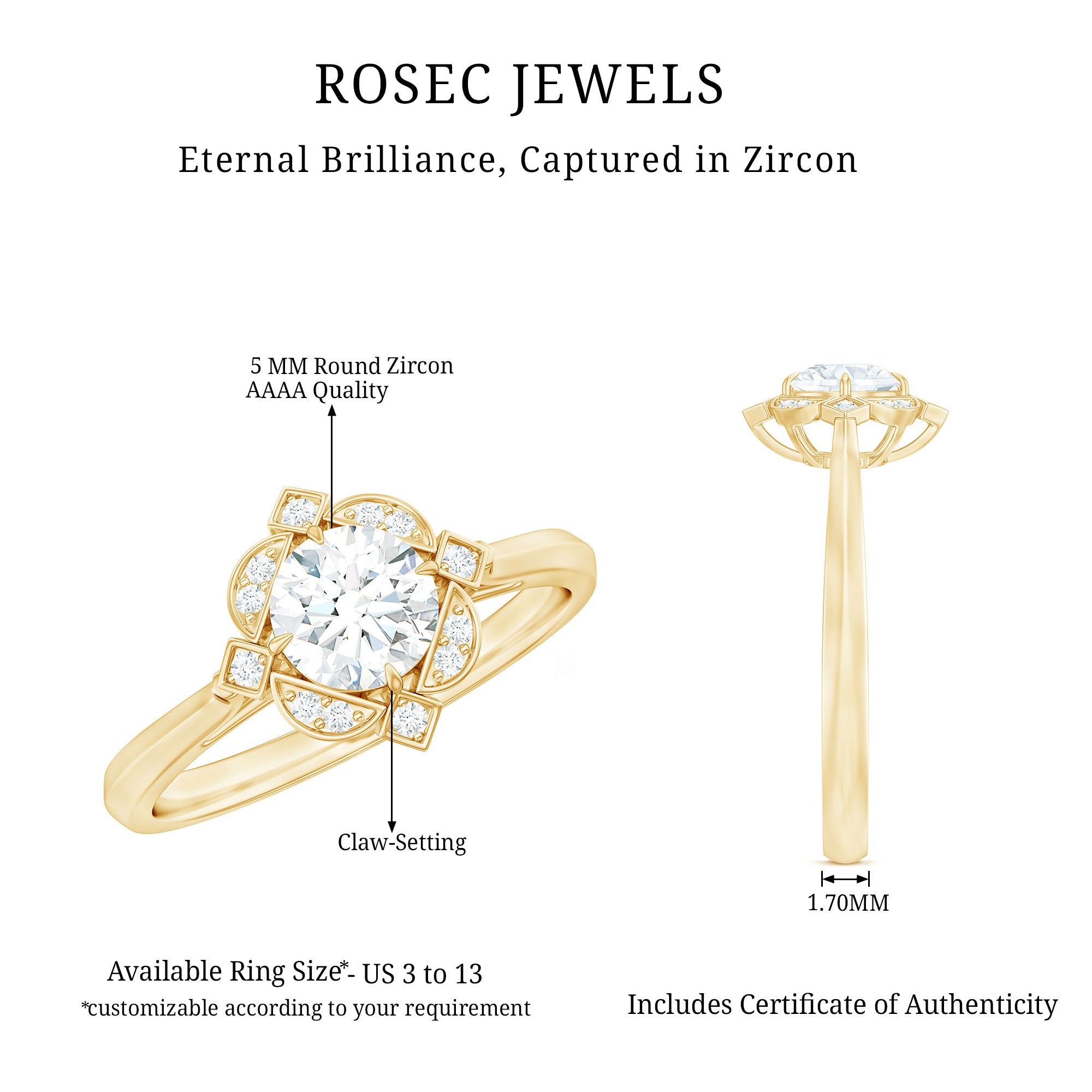 Stay true to your promises with this beautiful zircon engagement ring. Featuring a round-cut zircon in a claw setting at the center, surrounded by additional round-cut zircon in a surface prong setting, this vintage-inspired ring is the epitome of style and elegance. Crafted from solid gold, this cubic zirconia ring is the perfect piece of jewelry for your significant other, a symbol of your love and commitment that they can wear every day. Whether youre celebrating an anniversary, marking a milestone, or simply letting them know how much they mean to you, this vintage engagement ring is the ideal choice. So why wait? Keep your vows with this stunning simulated diamond ring today.