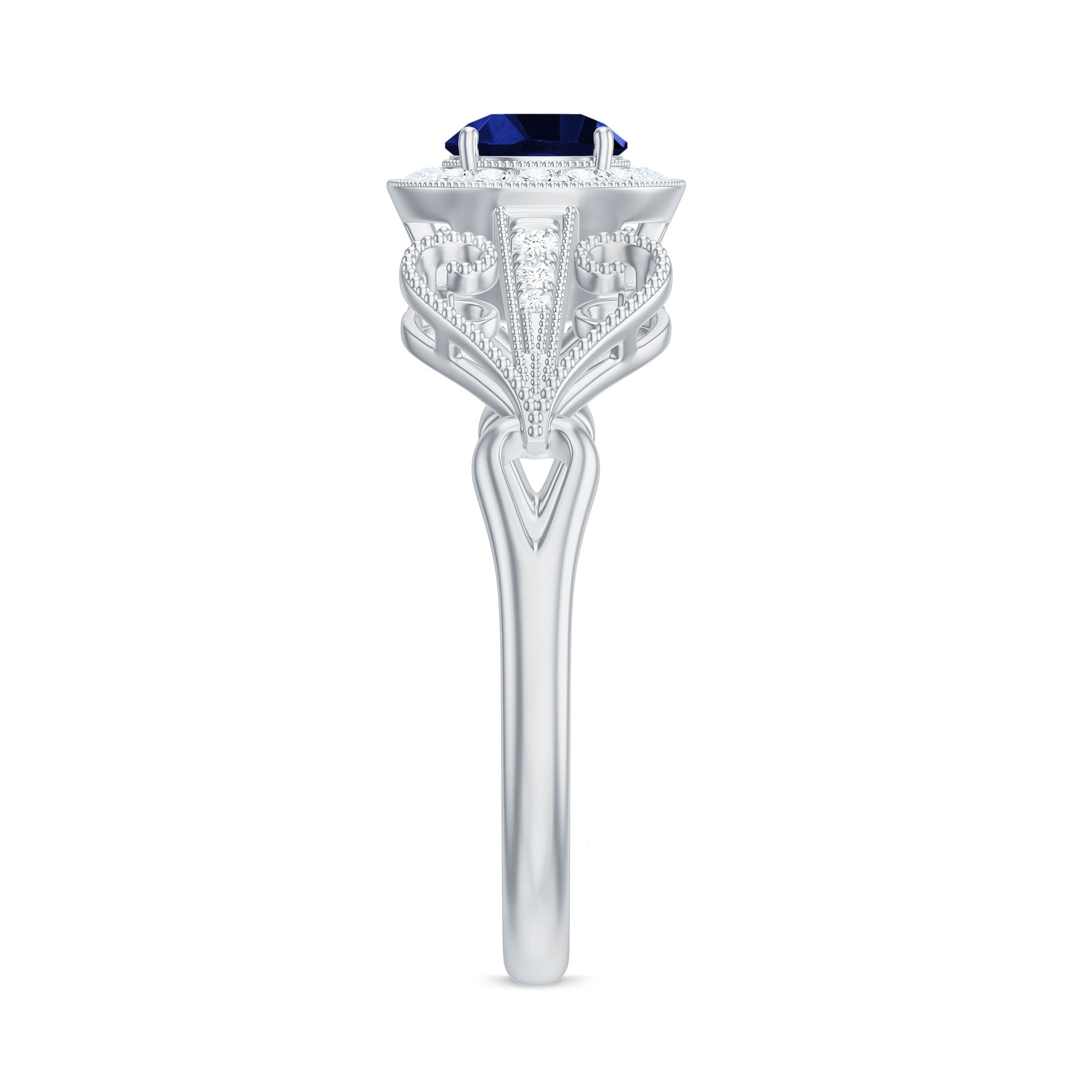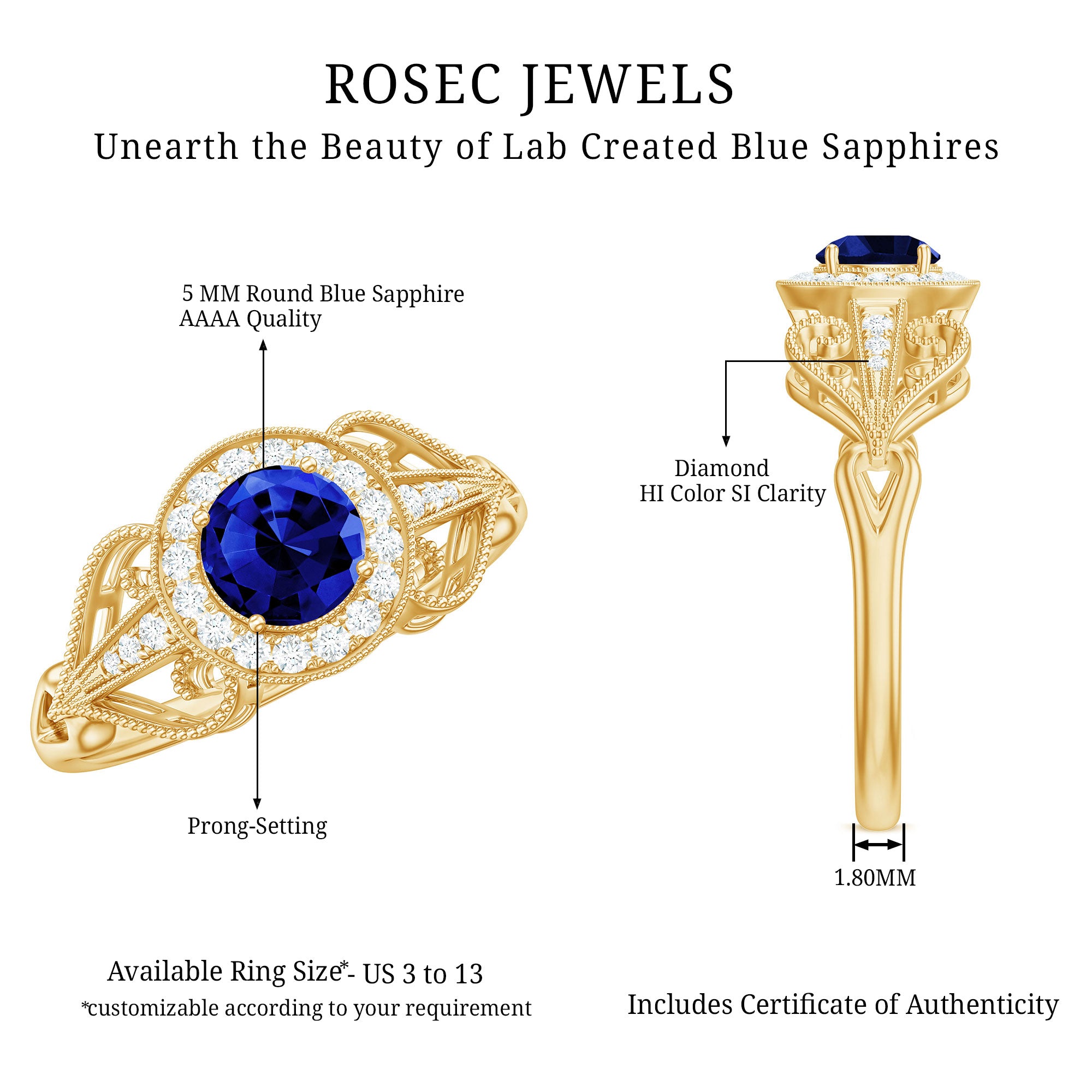Vintage Lab-Created Blue Sapphire Diamond Engagement Ring