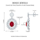 Vintage Lab Created Ruby Bridal Drop Earrings with Diamonds