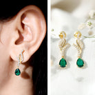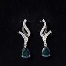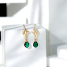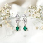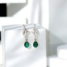 Vintage Lab Grown Emerald Teardrop Earrings with Diamond Accent