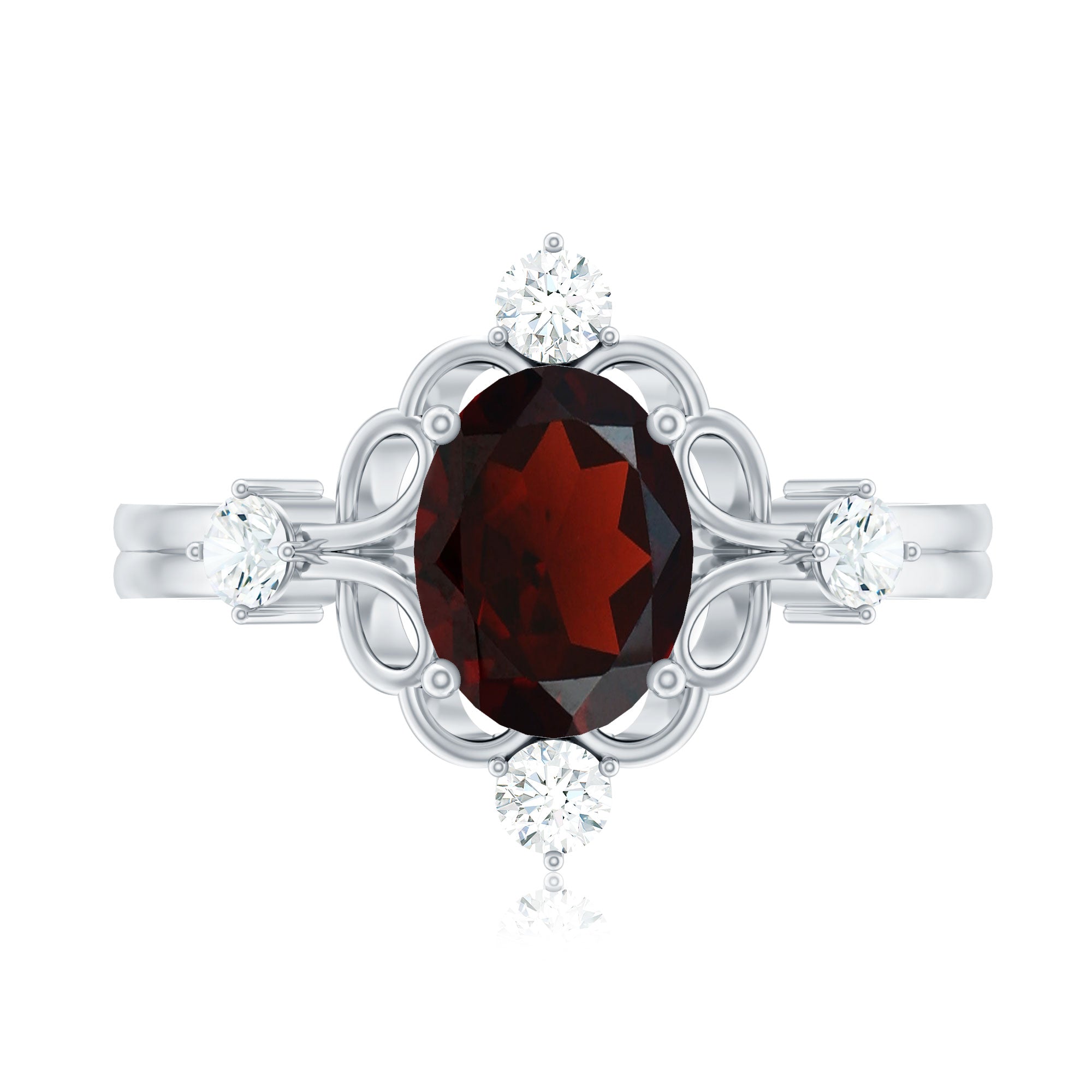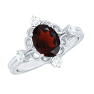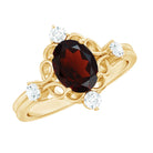 Vintage looking 6X8mm Oval Garnet Engagement Ring with Diamond
