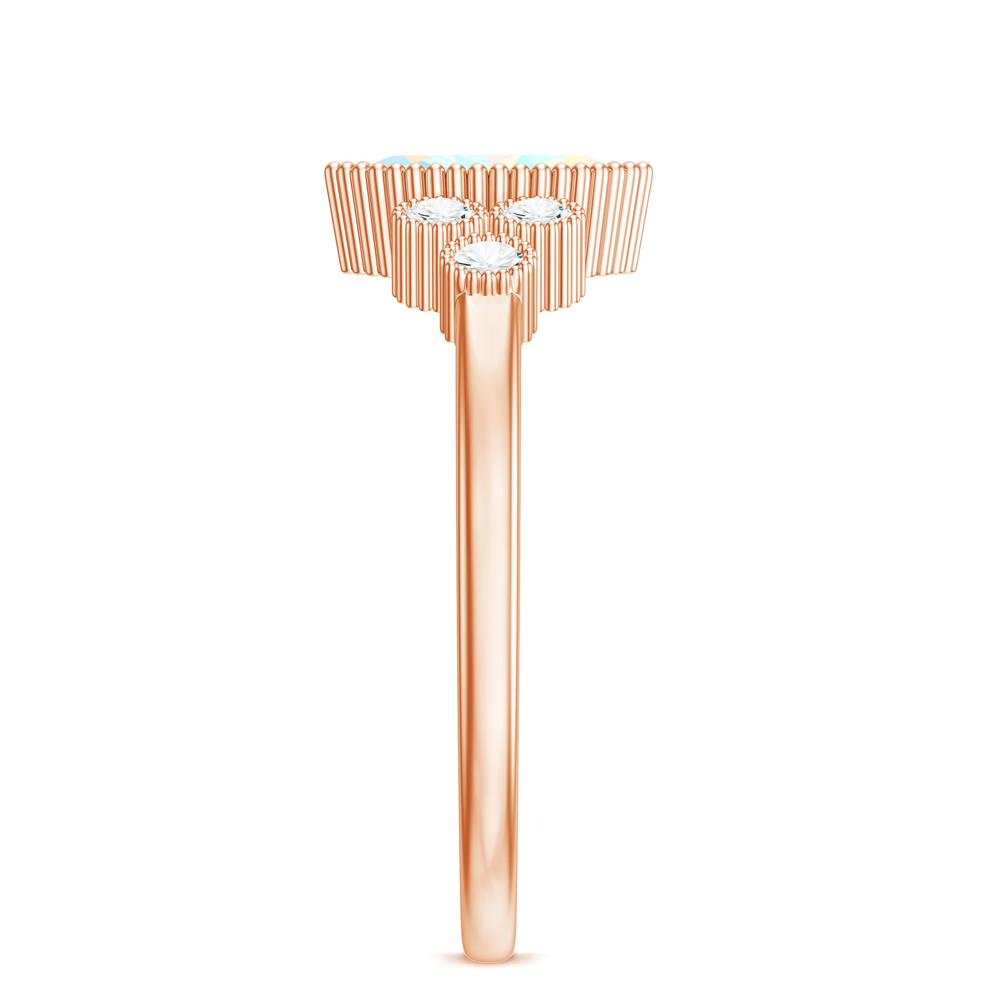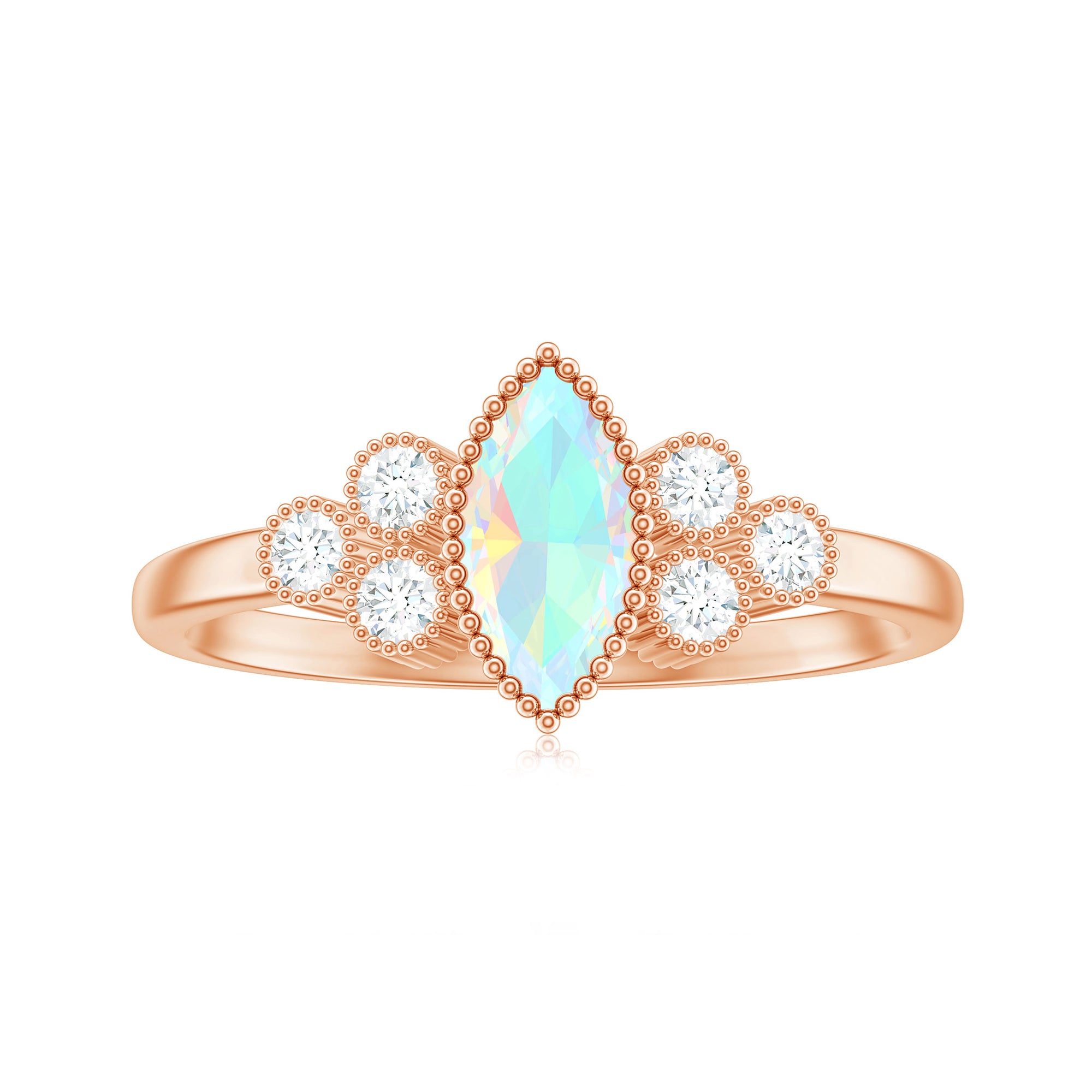 Vintage Looking Rainbow Opal Marquise Engagement Ring with Diamond Trio