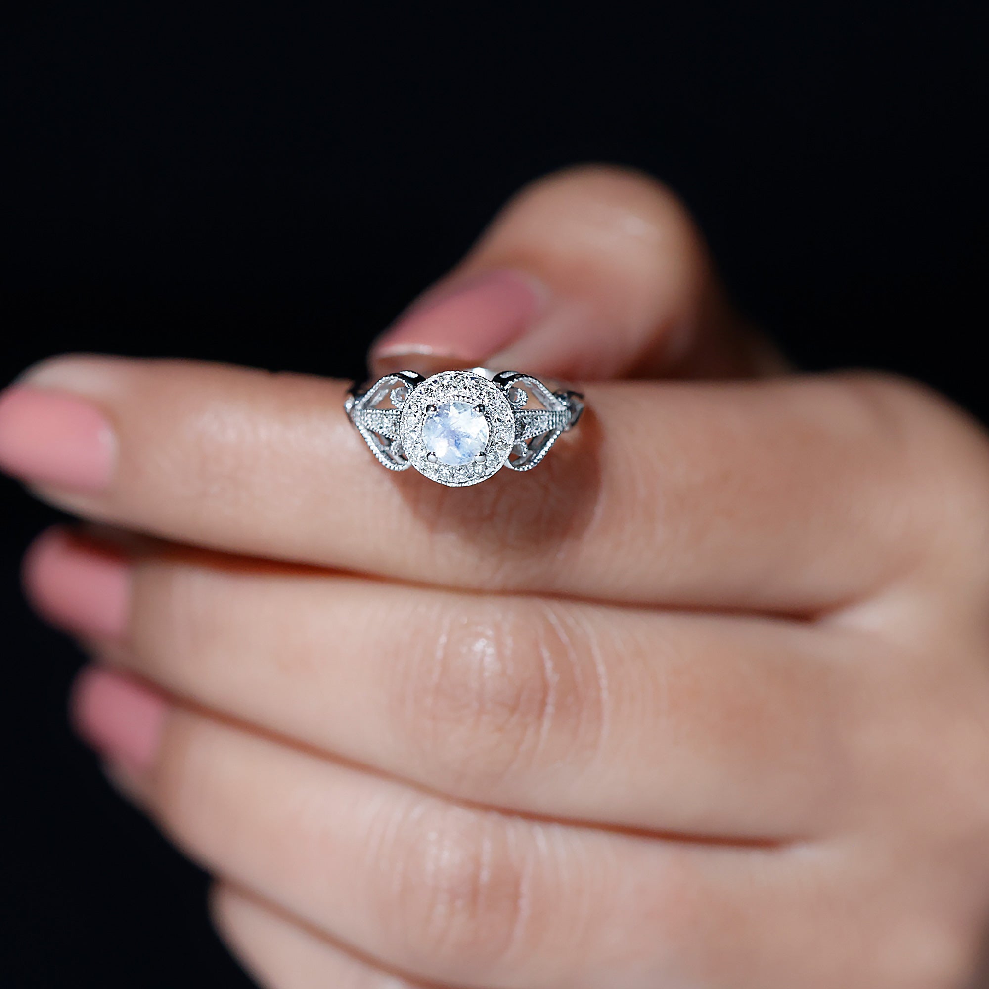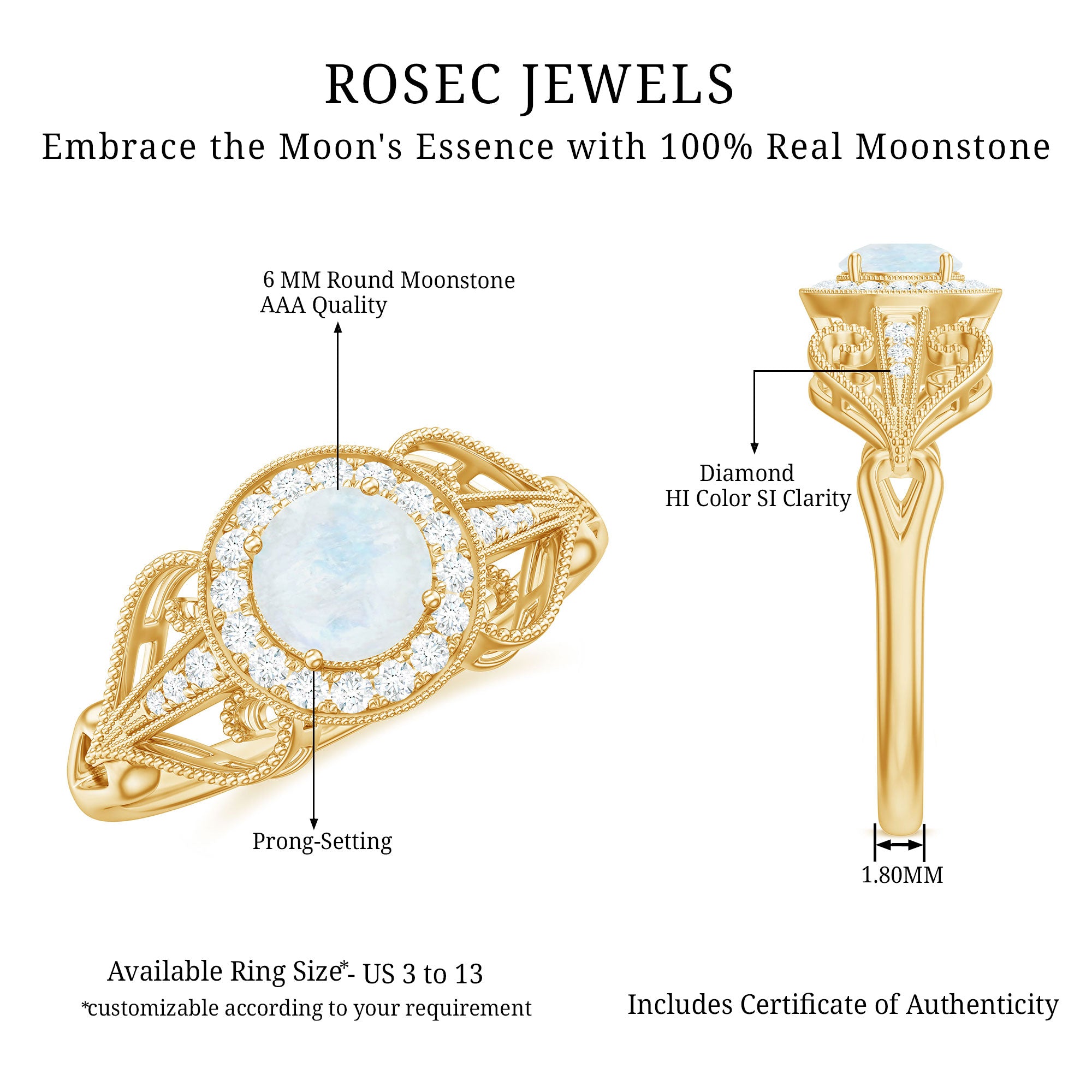 Vintage Moonstone Diamond Engagement Ring with Beaded Detail