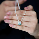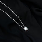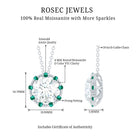 This Moissanite Pendant is perfect for completing your look for the special day. This pendant is crafted with 14K White Gold Plated Silver and features an 8 MM Round Shape Moissanite securely placed in Prong Setting and adorned with beaded embellishment and smaller Lab Grown Emerald. This Vintage Pendant is accentuated with a hidden bail and dangles with a sturdy cable chain that makes it perfectly sit on the neckline. The Round Pendant Necklace beholds the classic shine of D-VS1 quality Moissanite and AAAA Quality Synthetic Emerald.