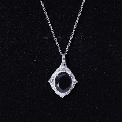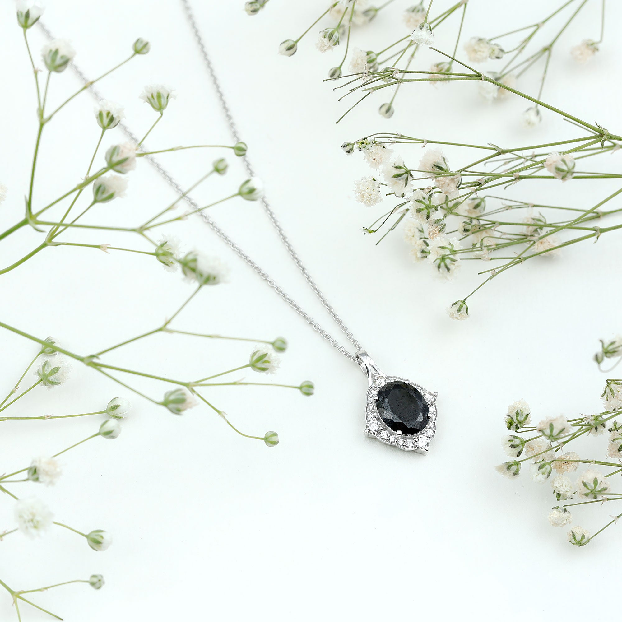 This Halo Pendant Necklace will captivate everyones attention towards you. It is bejeweled with a Pear Cut Lab Created Black Diamond while Round Shape Diamonds studded as Halo. Get this Created Black Diamond Pendant Necklace for your special person to make her stand out from the crowd.