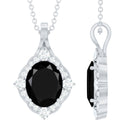 Vintage Style Created Black Diamond Halo Pendant Necklace