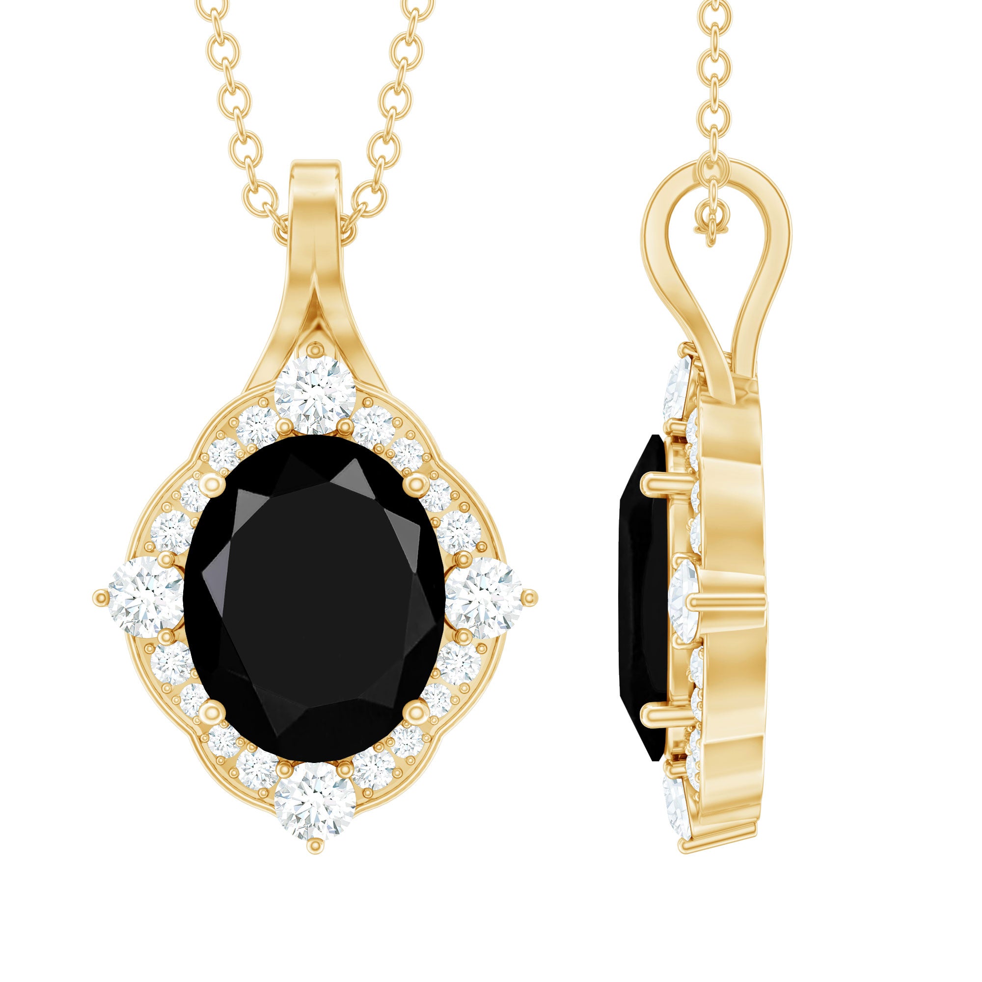This Halo Pendant Necklace will captivate everyones attention towards you. It is bejeweled with a Pear Cut Lab Created Black Diamond while Round Shape Diamonds studded as Halo. Get this Created Black Diamond Pendant Necklace for your special person to make her stand out from the crowd.