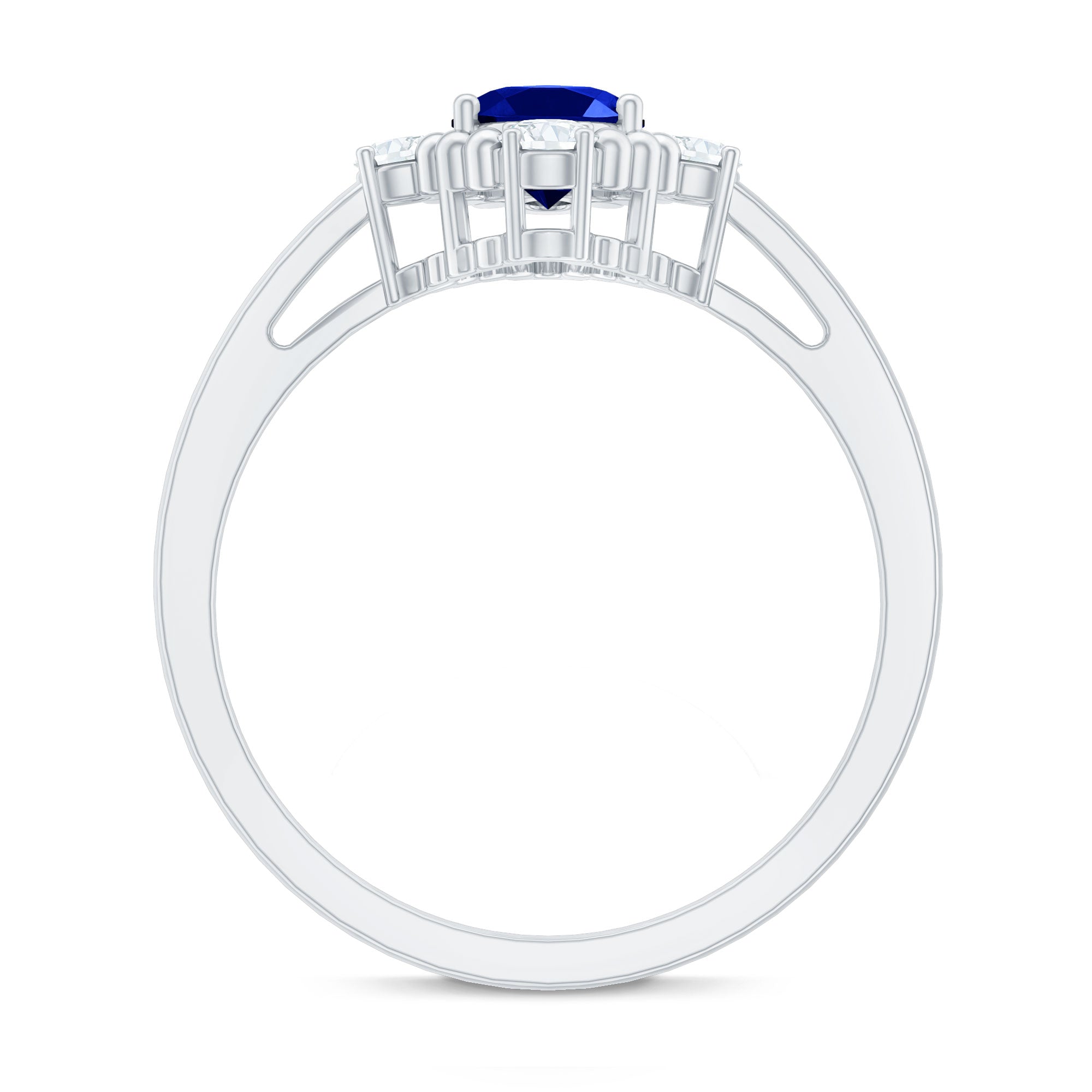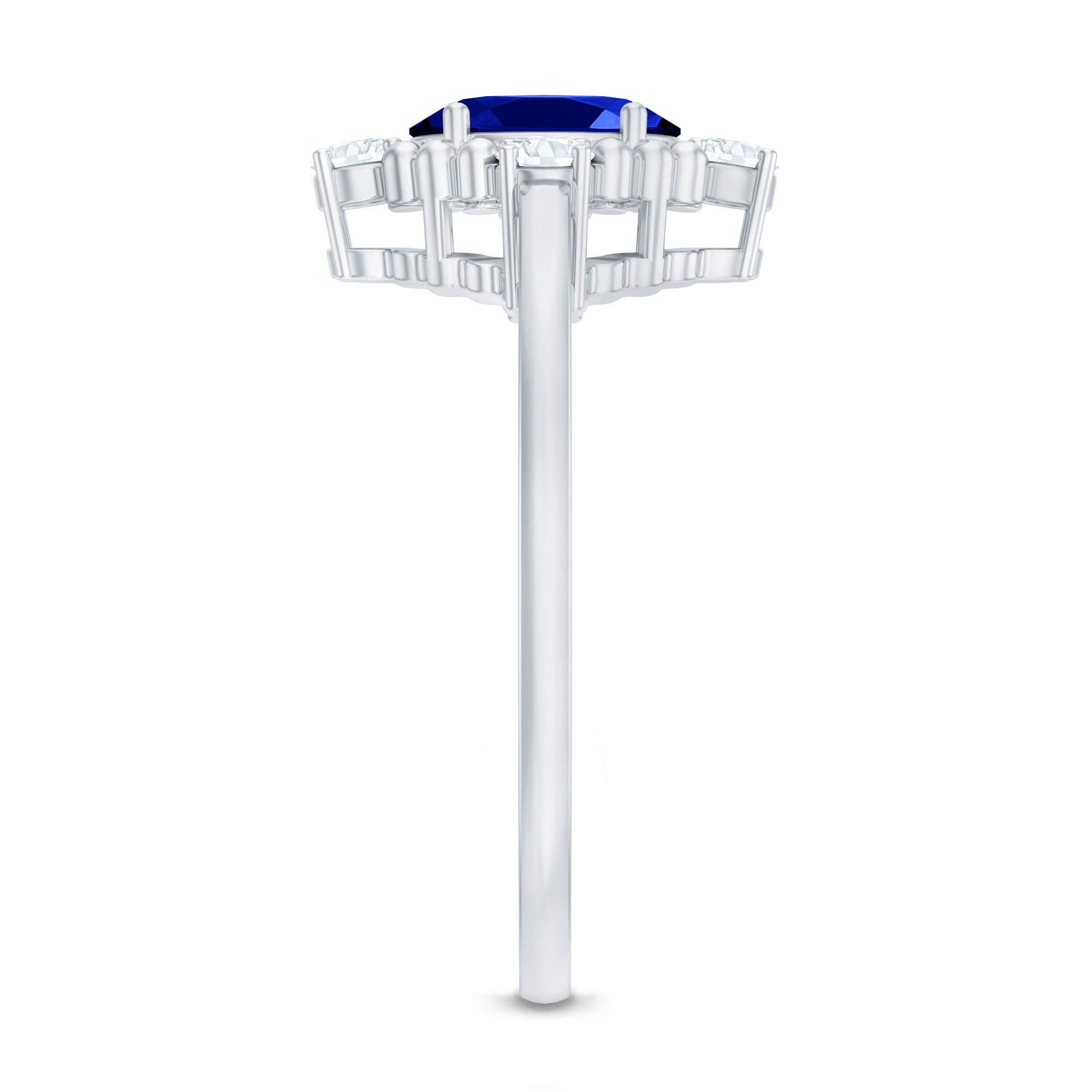 Vintage Style Created Blue Sapphire Solitaire Engagement Ring with Diamond