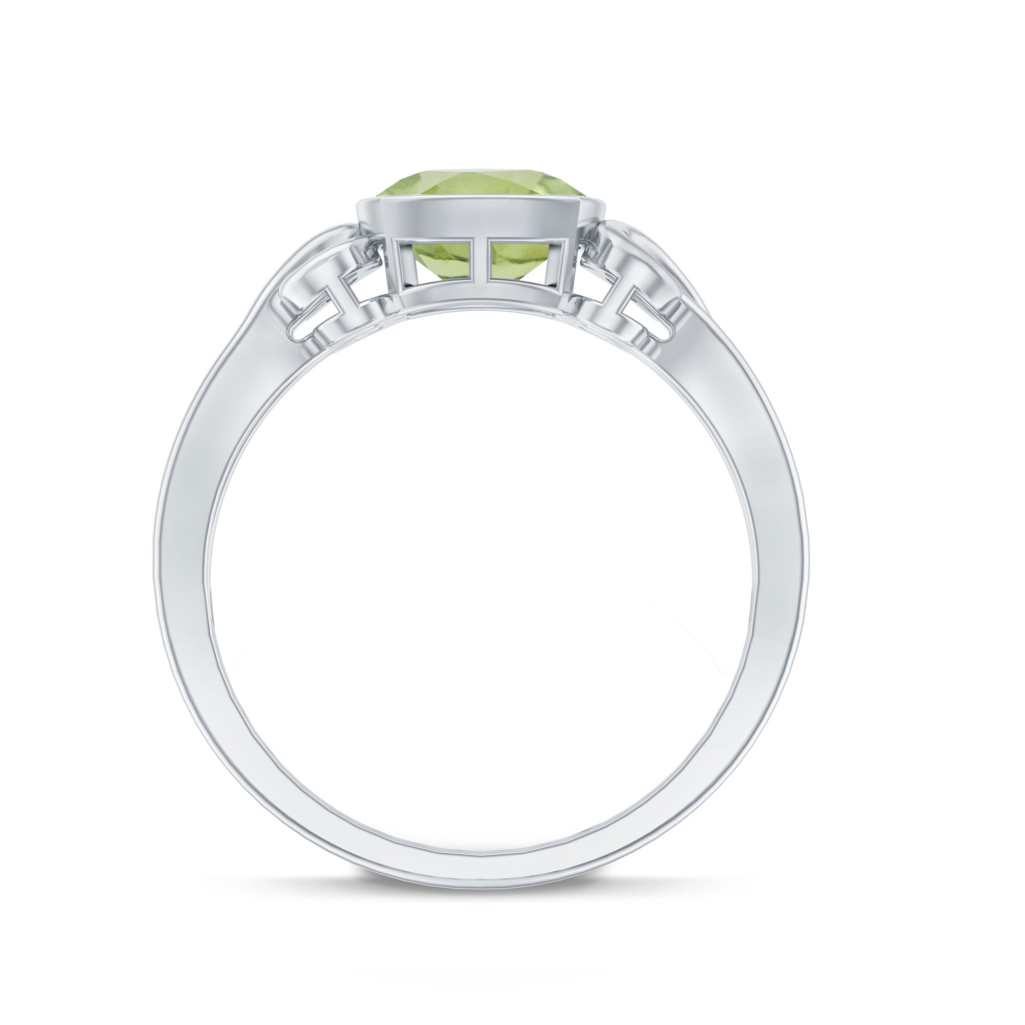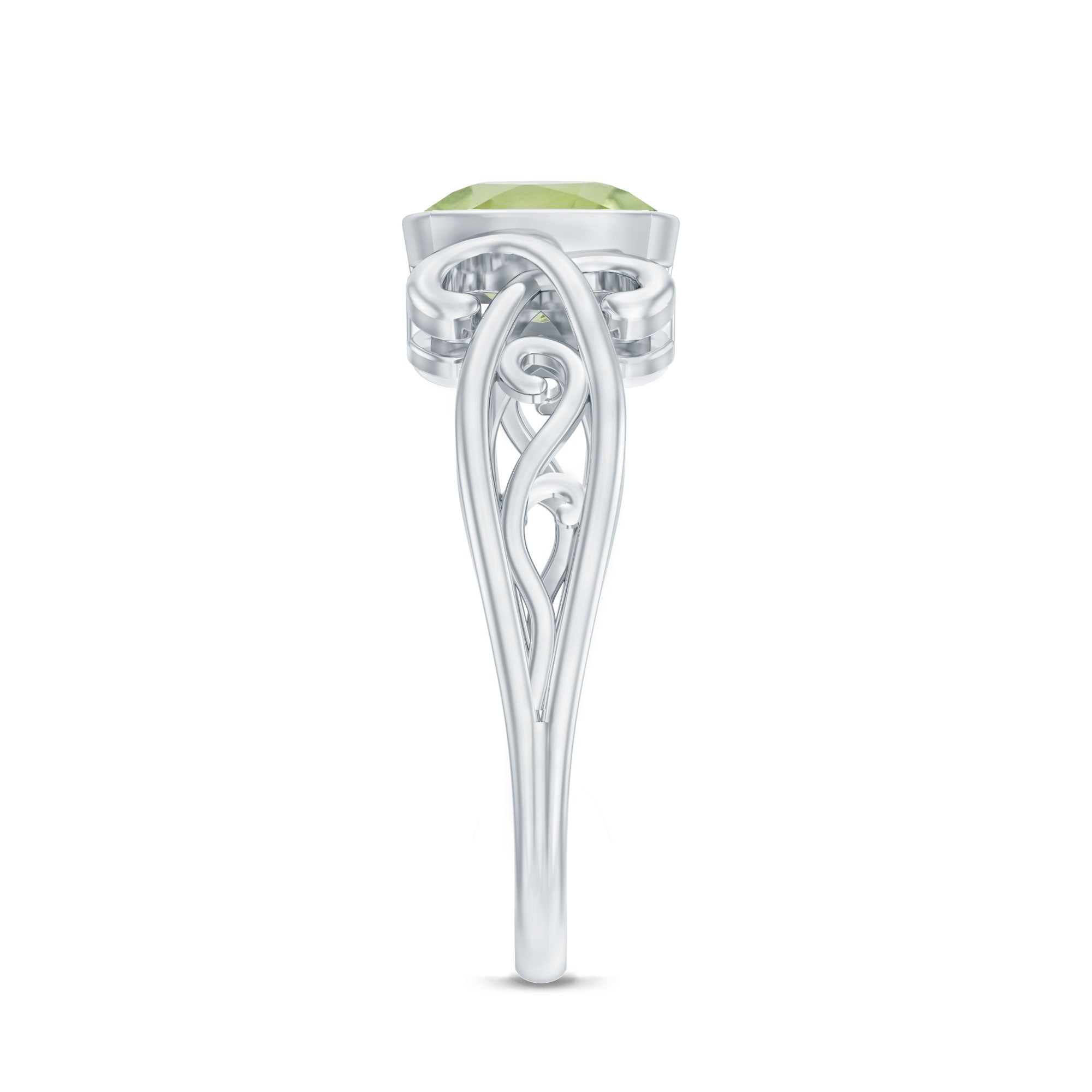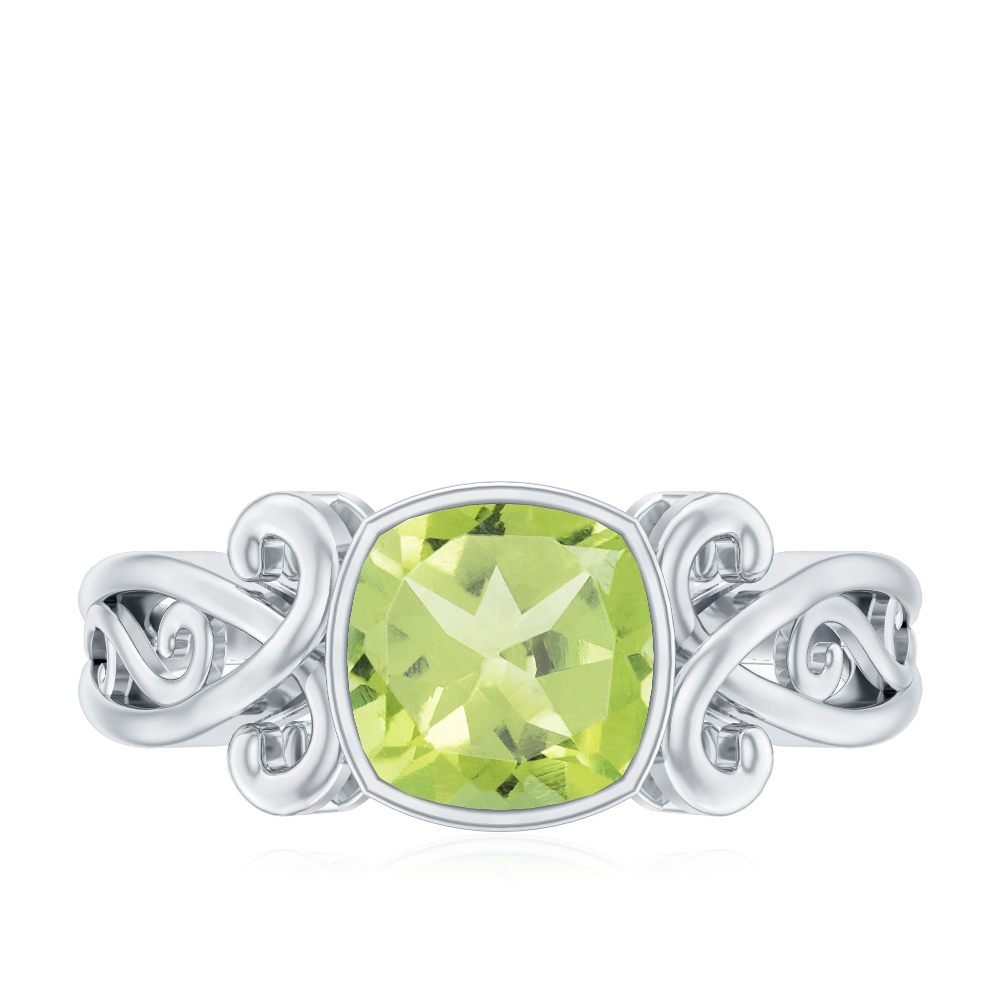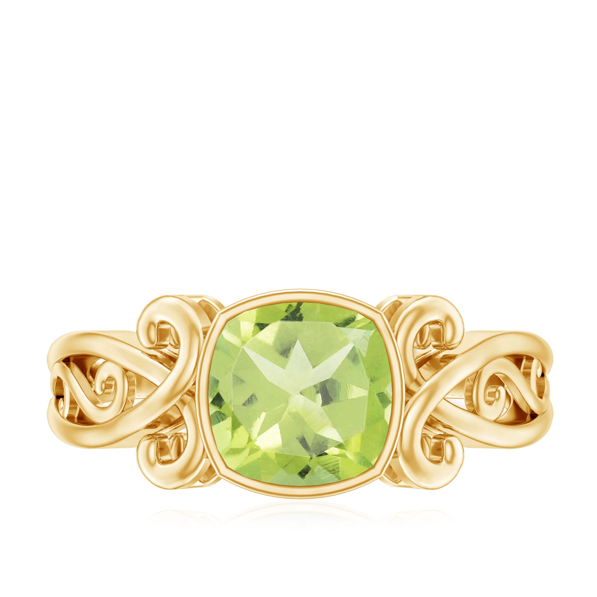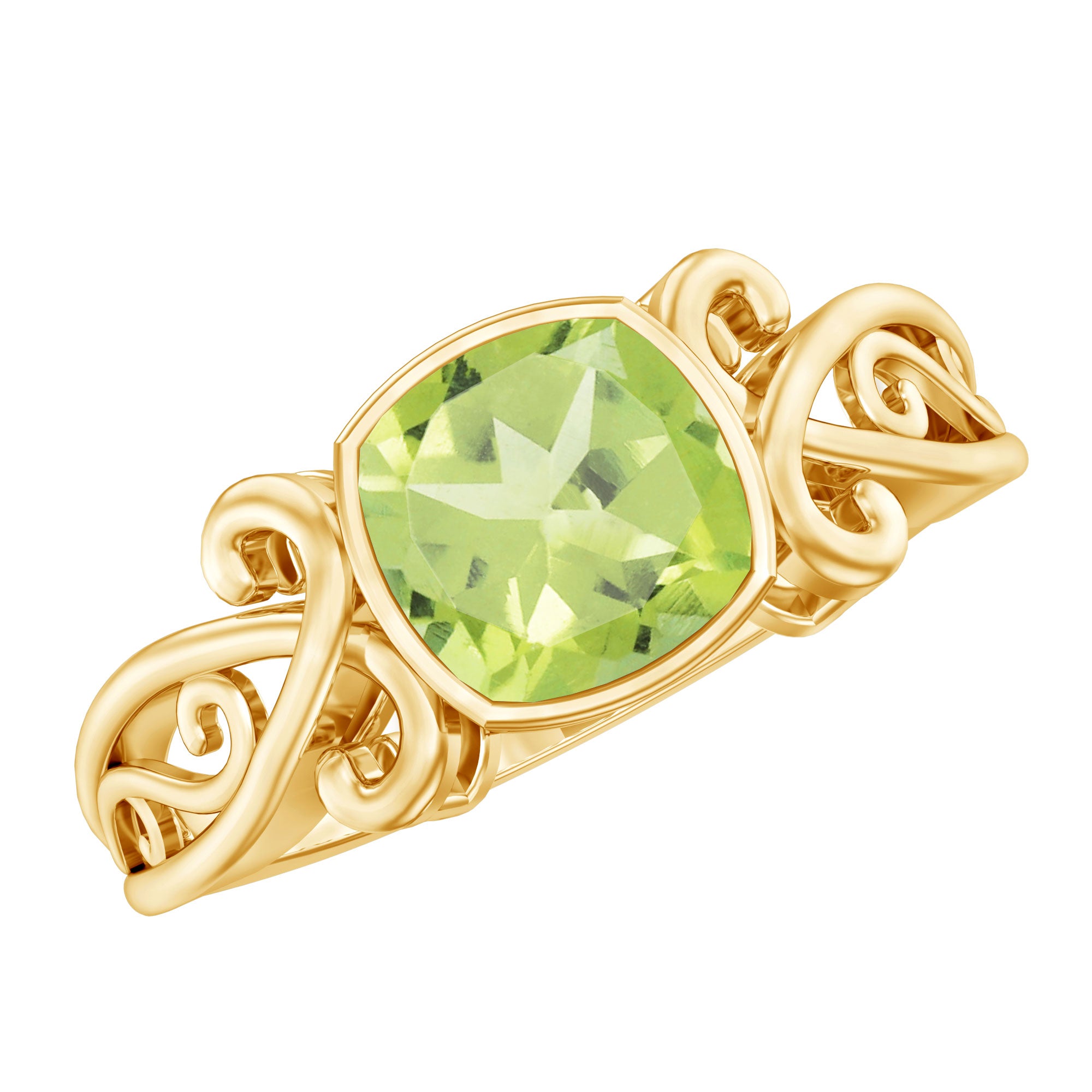 Vintage Style Cushion Cut Peridot Solitaire Ring in Bezel Setting