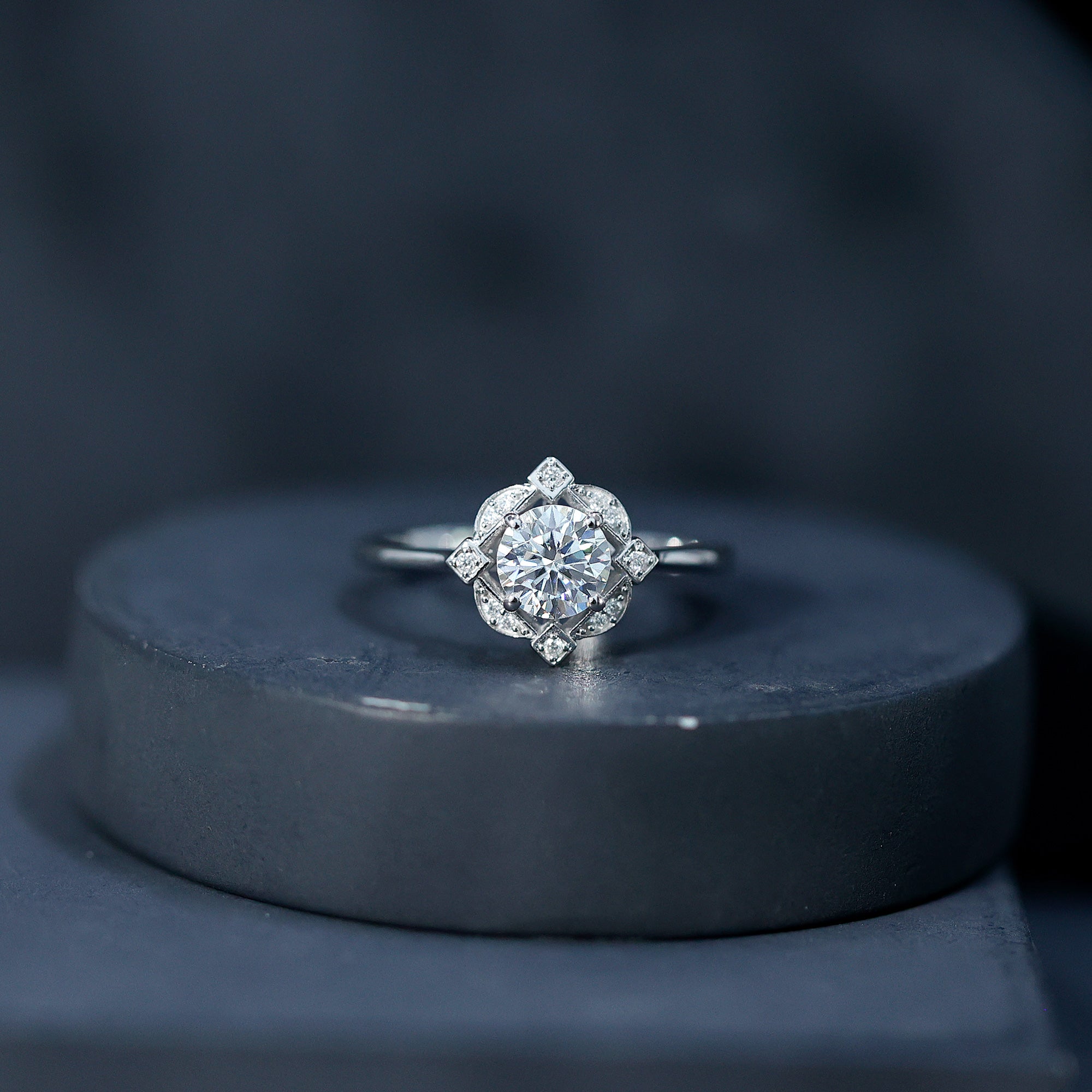 If old-school gestures of love make their way straight to her heart, this Vintage Lab Grown Diamond Engagement Ring is the one to pop the question with. Sparkling as bright as your love is the Centerpiece of 5 MM Round Shape Lab Grown Diamond in Claw Setting, that is effortlessly complemented by a scintillating Halo over an Abstract Art Deco Pattern for a more defined and retro touch.