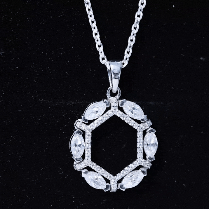 A masterpiece of artistry and sophistication, this exceptional Diamond Designer Necklace is a true statement of modern elegance. This Eternity Pendant showcases a mesmerizing hexagonal frame, curated with round and marquise shaped certified diamonds of EF-VS Quality, set in secure prong setting. The geometric structure creates a perfect balance between sophistication and contemporary flair. Handcrafted in high Quality metal by our expert artisans, this Lab Grown Diamond Pendant is a timeless statement of luxury. This beautiful Hexagon Necklace is delivered to you in a premium jewelry box and handed over to you in a ready-to-gift state.