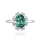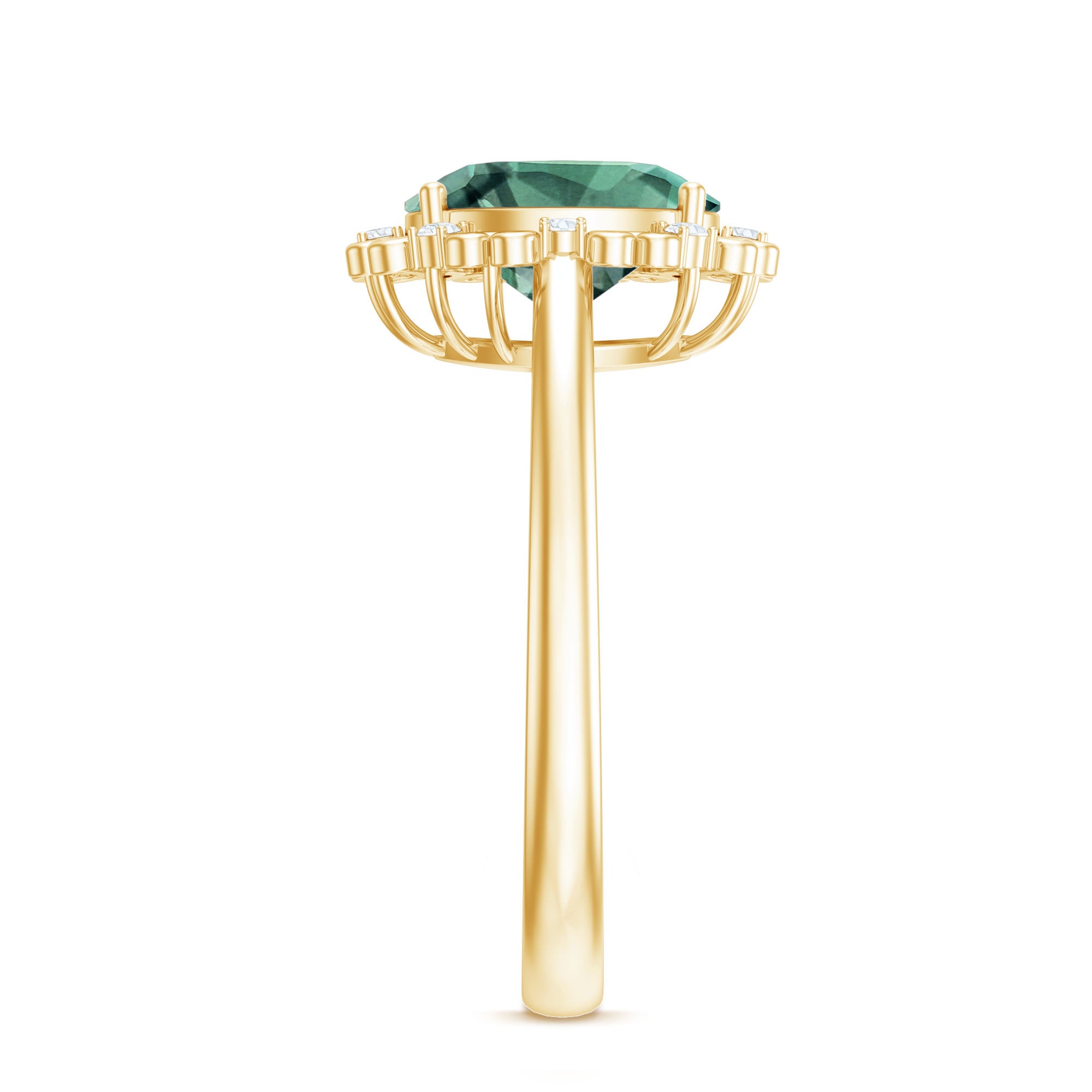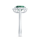 Splendid and elegant, this Engagement Ring is beautified with an Oval Cut Lab Grown Green Sapphire secured by 4 Prong Setting and Round Diamonds Accent. Style this amazing Lab Grown Sapphire Ring with your dressy attires and stand out from the crowd.