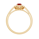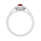 Vintage Style Lab Ruby and Diamond Halo Engagement Ring