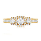 Our Moissanite Engagement Ring honors the Past, celebrates the Present, and shines for the Future. This Three Stone Engagement Ring is where vintage romance meets contemporary sparkle, a true tribute to timeless love and thoughtful design. Featuring three brilliant round cut Moissanite stones, each carefully chosen for its D color and VS1 clarity, and surrounded by smaller stones, the ring reflects your journey together. The trio of stones is delicately accented by dainty side gems that add extra shimmer without overpowering the meaningful centerpiece. Intricate beaded detailing along the band brings a vintage-inspired elegance, giving the 3 Stone Moissanite Ring a heirloom feel while the clean lines and modern craftsmanship ensure a fresh, unforgettable look. Crafted for the romantic who appreciates both tradition and individuality, this Past Present and Future Ring is more than just a symbol of love, it’s a reflection of shared values, deep connection, and lasting beauty. Whether youre preparing to propose or celebrating a milestone, this Vintage Engagement Ring is designed to make the moment magical. Presented in a beautiful jewelry box and available in a range of sizes, its ready to become part of your forever. Let this stunning piece be the sparkle that marks the beginning of your next chapter, full of love, meaning, and memories to come.