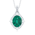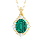 Vintage Style Oval Halo Pendant with Created Emerald and Diamond