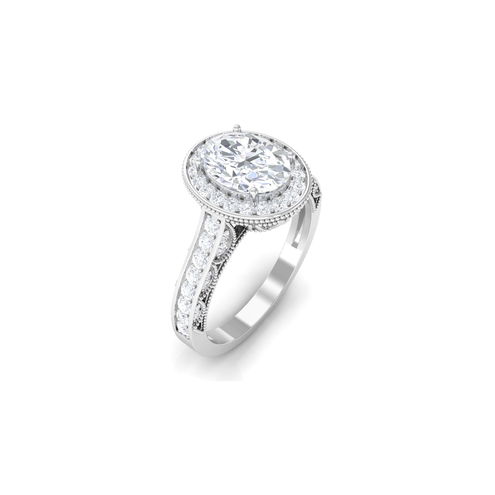 Vintage Style Oval Simulated Diamond Halo Engagement Ring