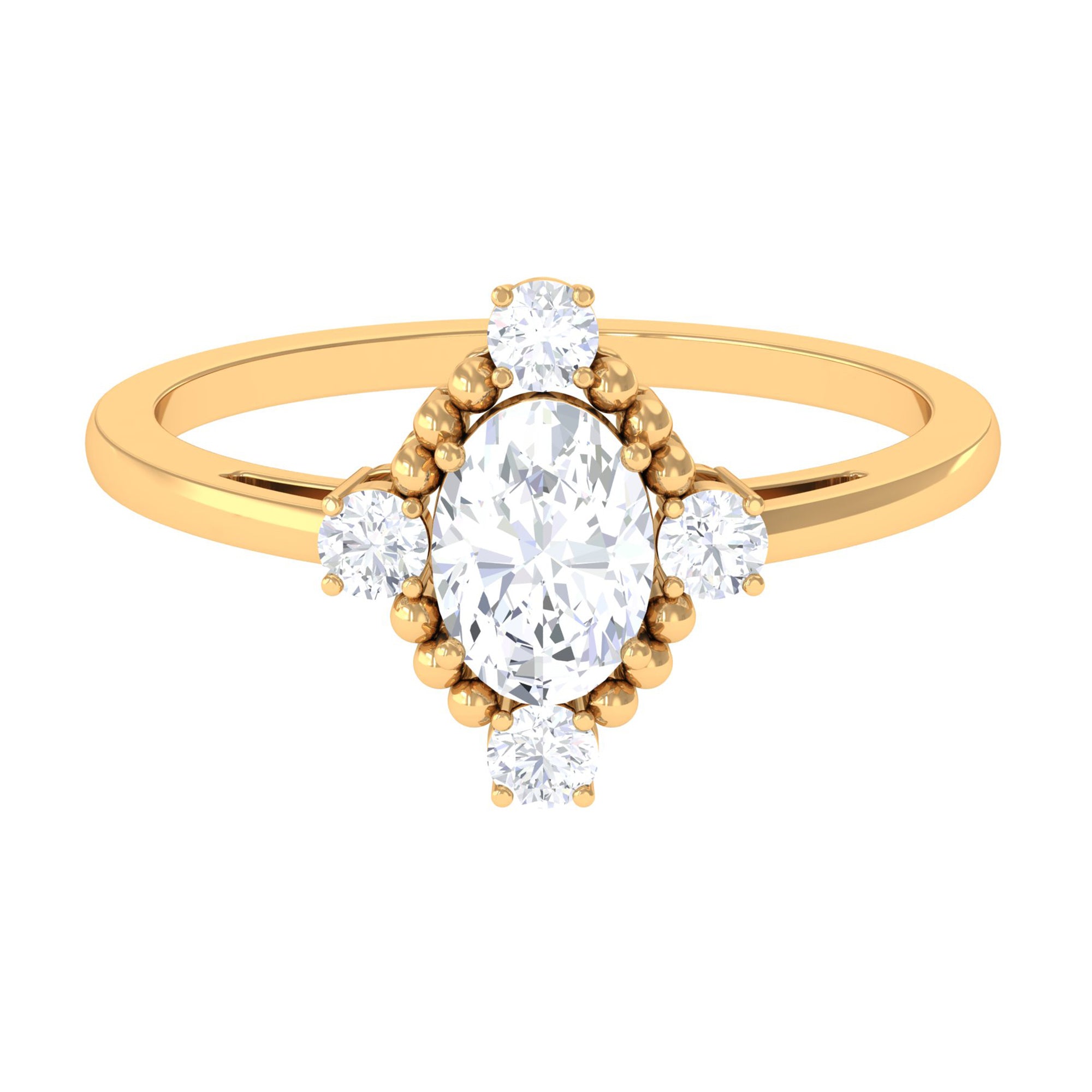 Vintage Style Oval Zircon Solitaire Engagement Ring with Gold Beaded