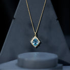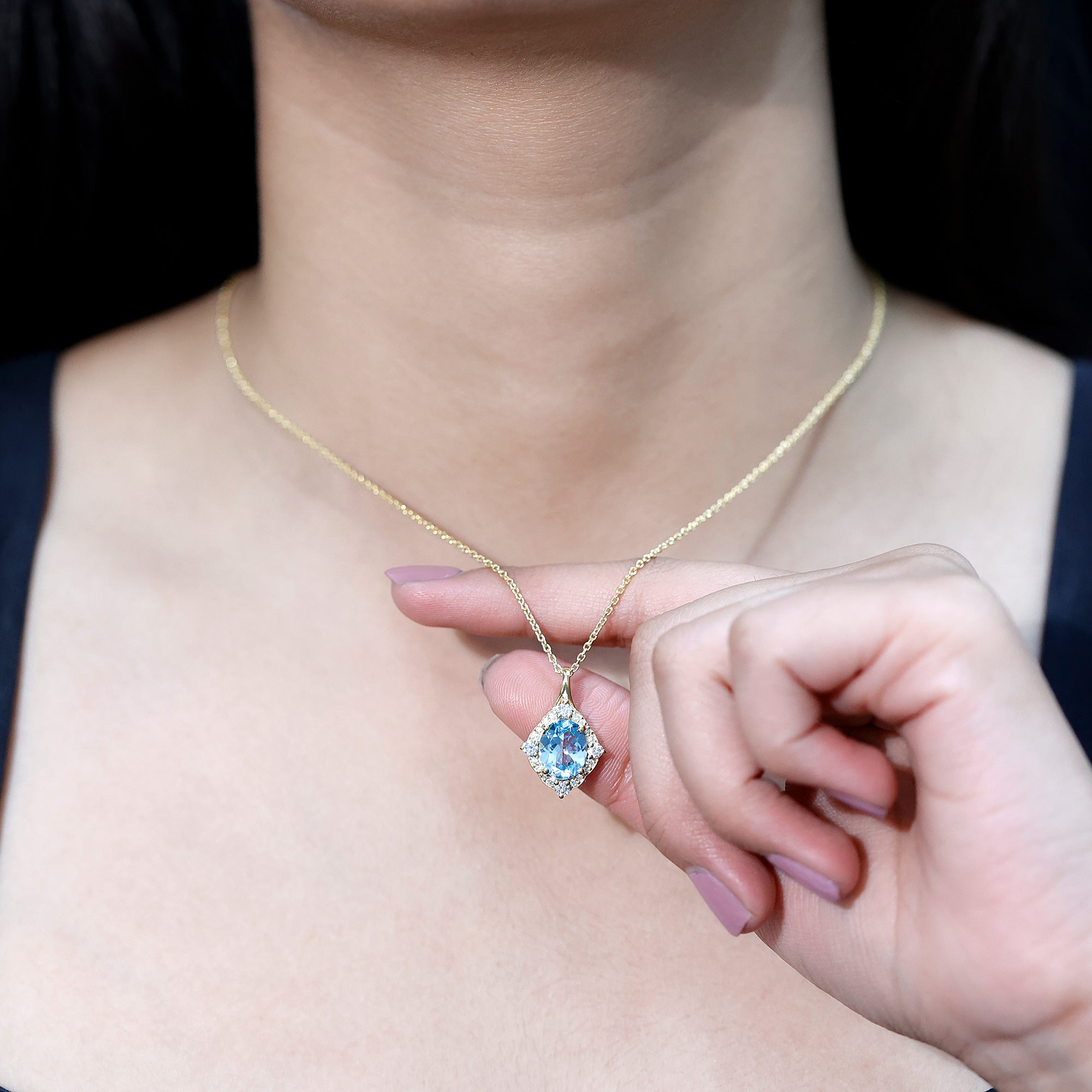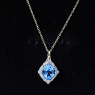 Vintage Style Sky Blue Topaz Diamond Halo Necklace