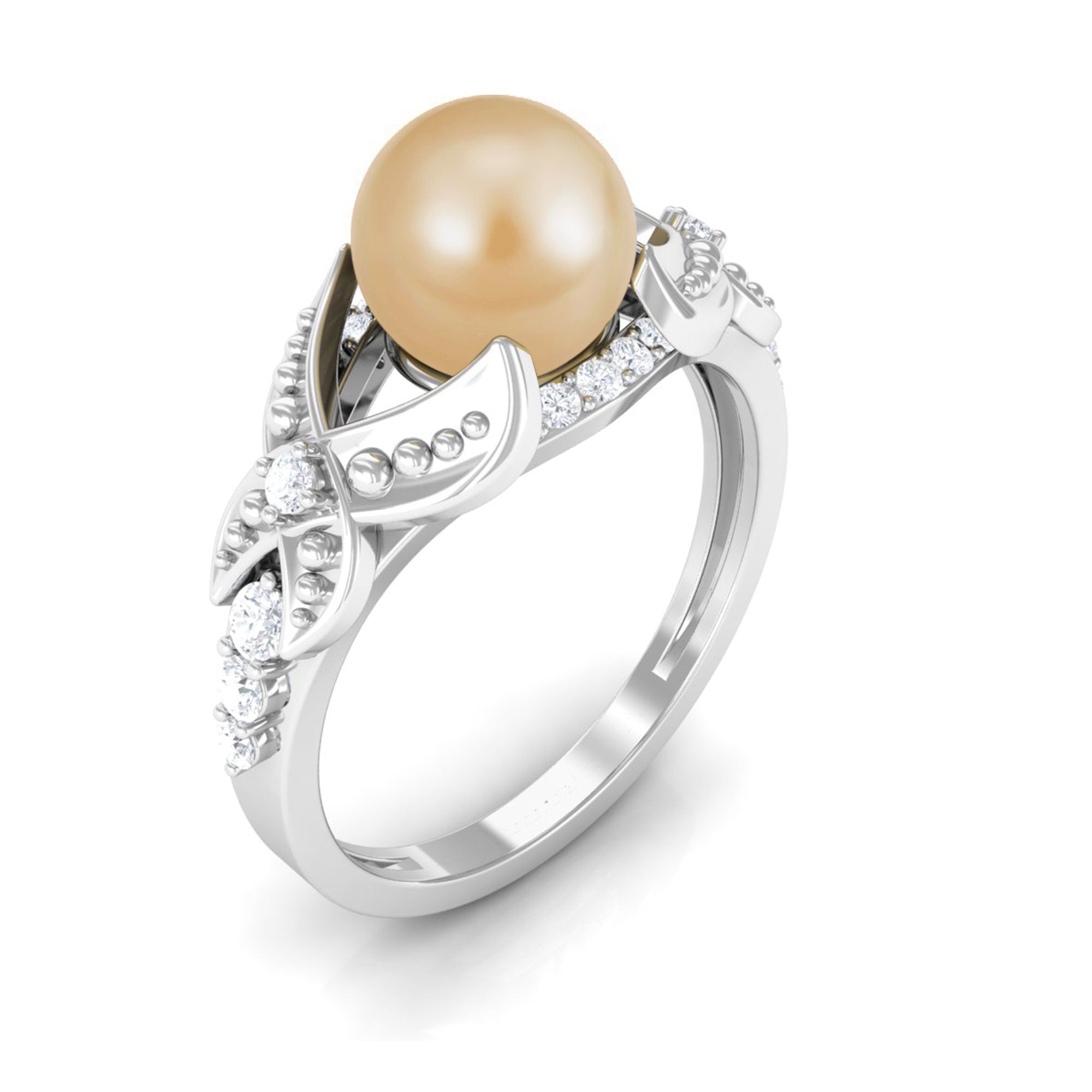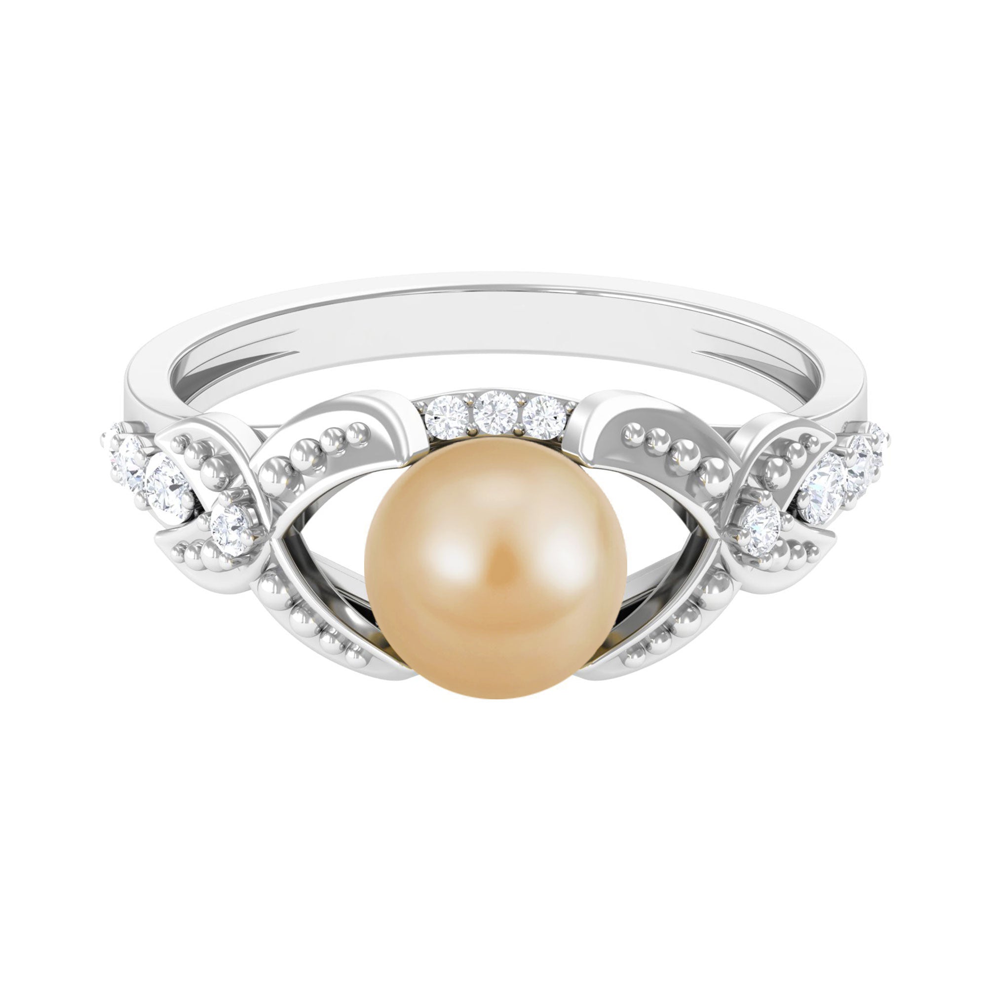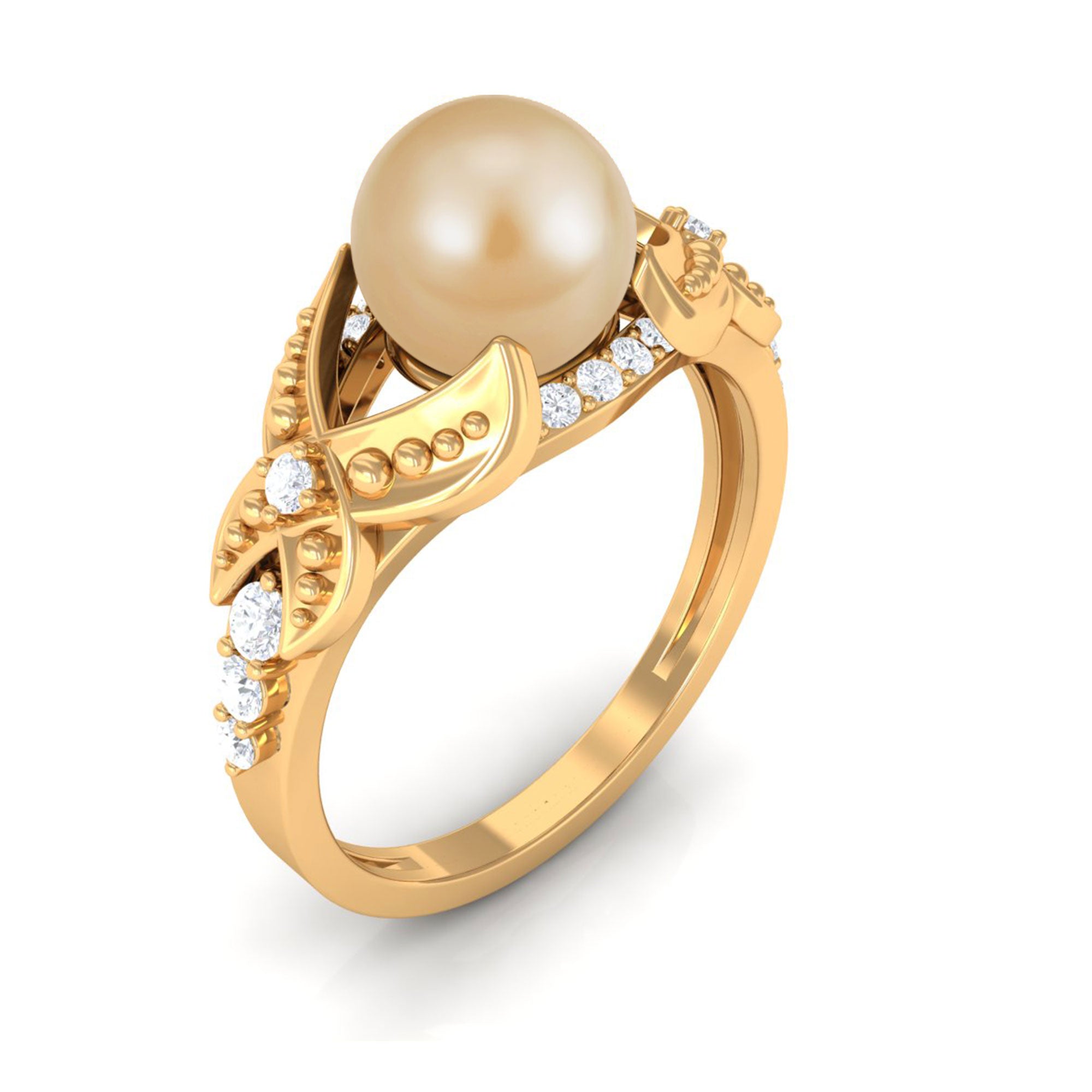 Make a statement with this beautiful solitaire engagement ring, featuring a round-cut south sea pearl at its center and Diamond stones on the sides, all enhanced with beaded gold detailing. Crafted from gold metal with a split shank, this golden pearl and Diamond ring is an extraordinary piece of jewelry that every woman should possess.