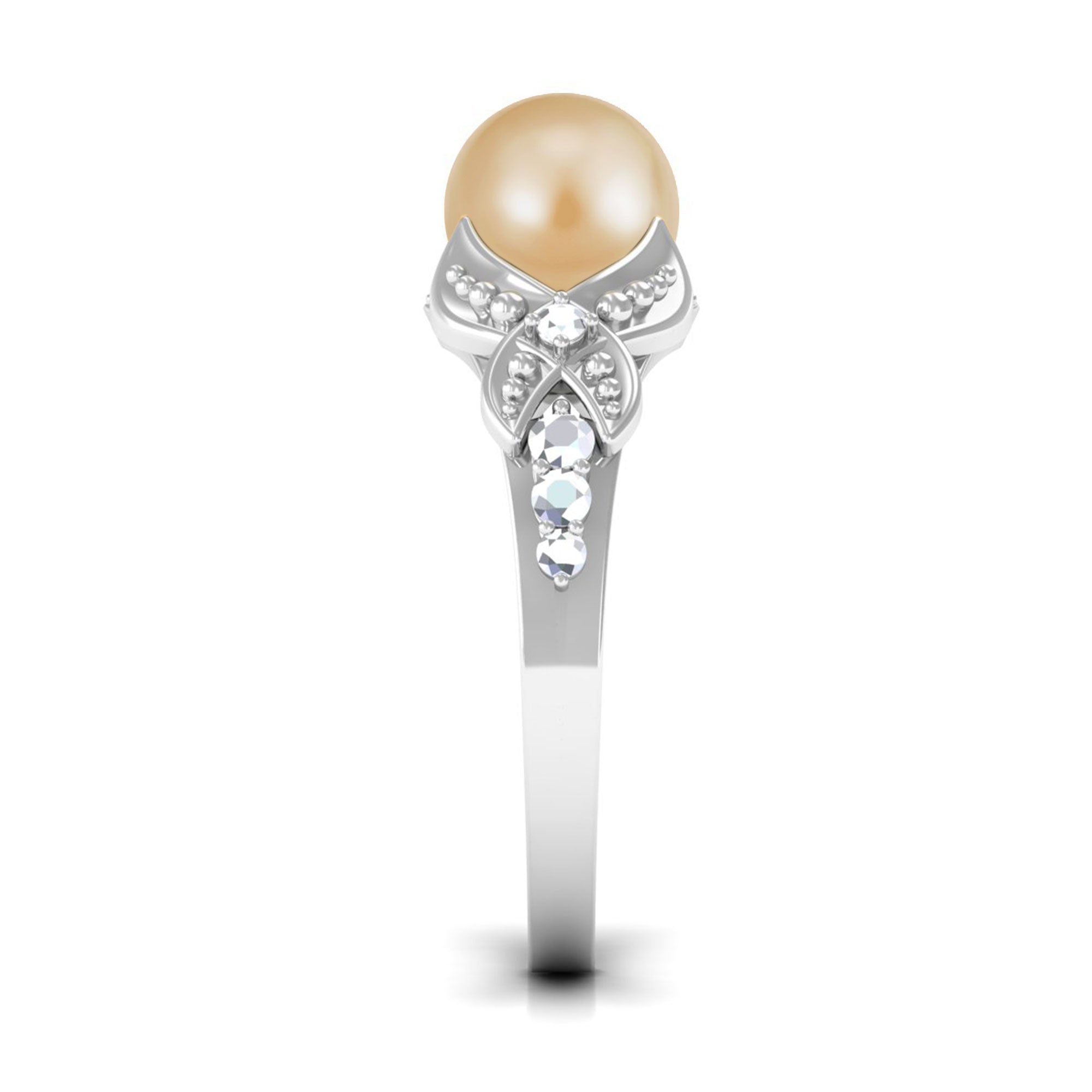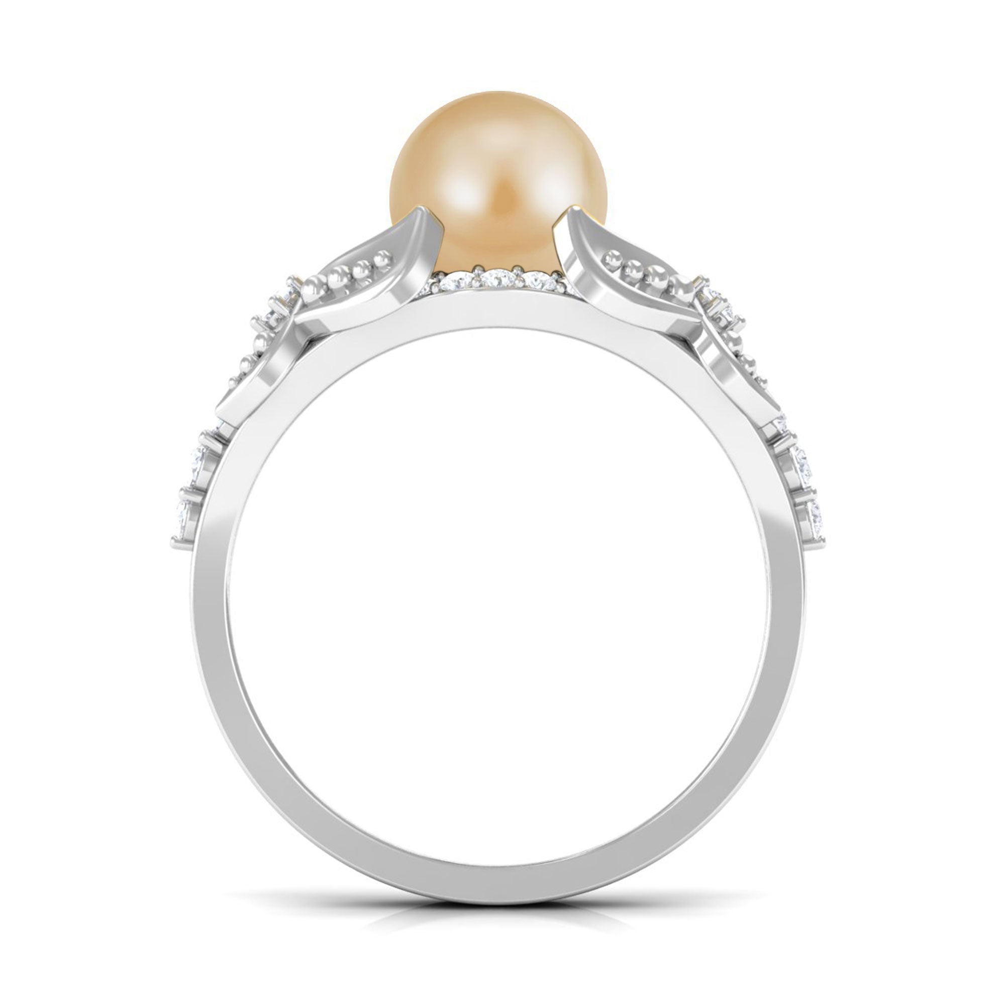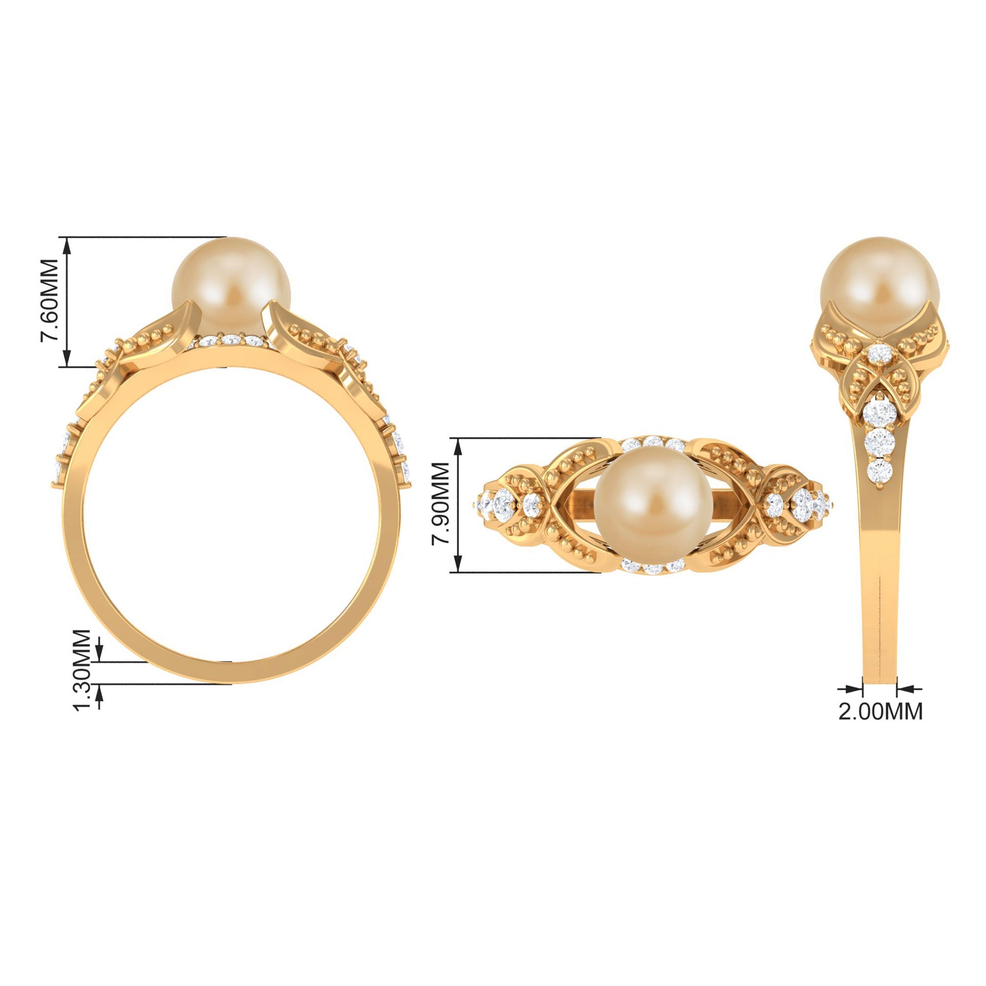 Make a statement with this beautiful solitaire engagement ring, featuring a round-cut south sea pearl at its center and Diamond stones on the sides, all enhanced with beaded gold detailing. Crafted from gold metal with a split shank, this golden pearl and Diamond ring is an extraordinary piece of jewelry that every woman should possess.