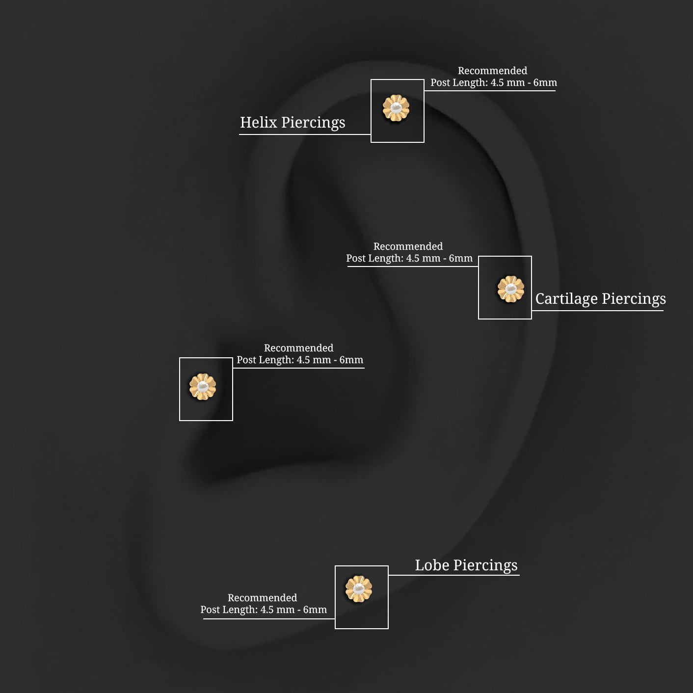 Adorn your Helix Piercing with our Freshwater Pearl Floral Earring, a delicate masterpiece of natures inspiration.The earring features a lustrous Freshwater Pearl at its center, this earring exudes beauty and uniqueness.This stunning earring is perfect for Helix Piercings, it can also be styled on your Conch, Cartilage, Tragus, or Upper Lobe Piercing.This white pearl earring is a unique accessory that brings an enduring touch of grace to your style, suitable for any occasion. It is a thoughtful gift for a loved one.