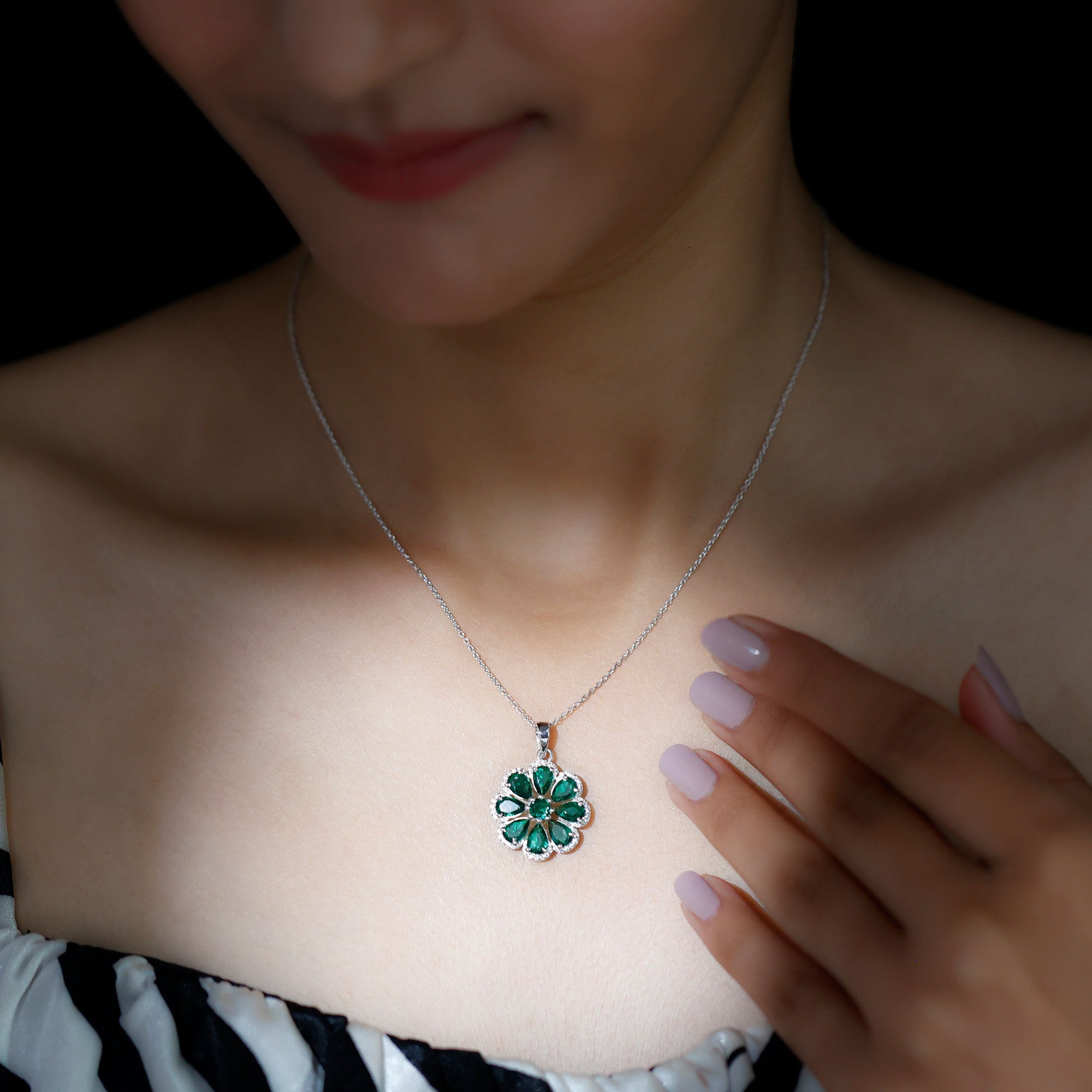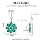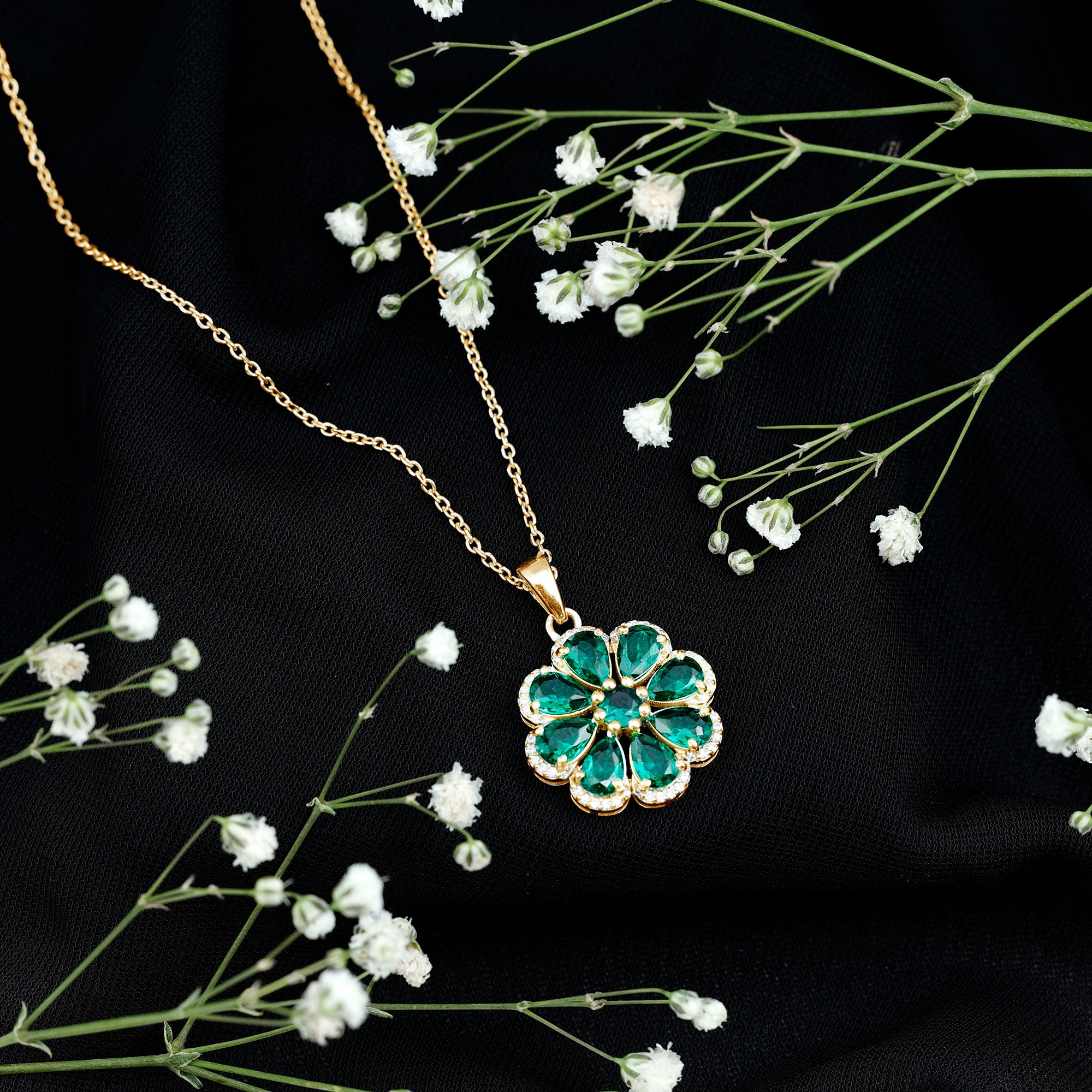 Womens Lab Grown Emerald Flower Necklace with Chain