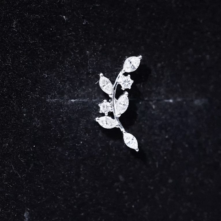 Ear Crawler is the easiest way to look effortlessly stylish! This earring features marquise diamonds resembling as sparkling leaves. Made in responsibly hallmarked metal for everyday wear. You can style this diamond leaf earring on your helix or cartilage piercing, as the flat back closure will keep it intact in place. Designed to be worn up and around the ear, making it easy to wear and perfect to rock from day to night. To create a fashion-savvy look, pair this climber earring with gemstone studs or drops. This item is also an ideal gift for birthdays, anniversaries, or romantic surprises, elegantly celebrating the most cherished moments in life. It is offered in a range of metal color choices and comes in various metal types as well. The Piercing Stud includes a certificate of authenticity for the gemstones and is beautifully packaged in a high-quality storage box.