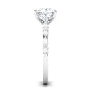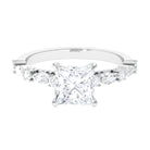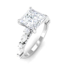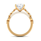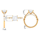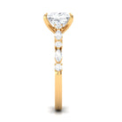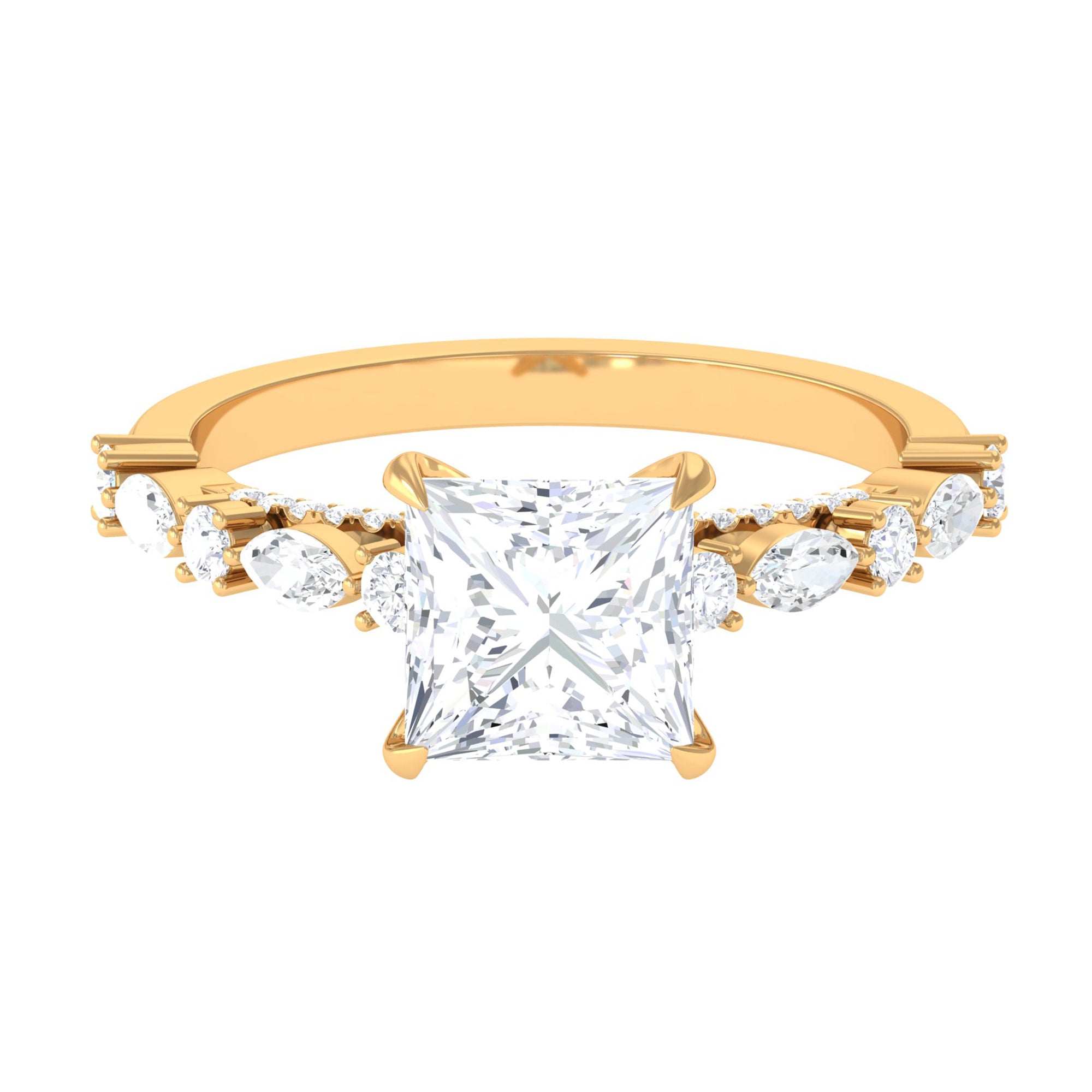 Crafted from solid gold, this stunning solitaire engagement ring features a princess cut Zircon stone in a claw setting, accompanied by smaller marquise and round zircon stones on the sides. To add a touch of elegance, the designer ring also boasts a surprise band adorned with sparkling zircon stones.