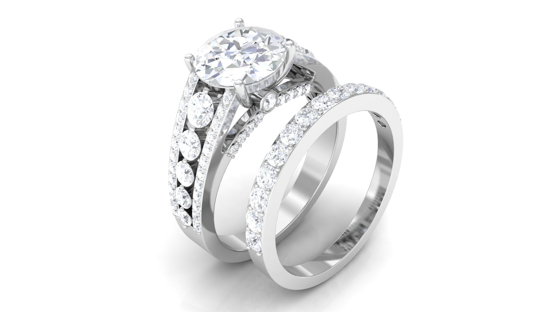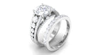 Express your love with this Solitaire Ring Set adorned with Round Cut Zircon in Prong Setting and a half eternity band makes it a perfect designer jewelry.