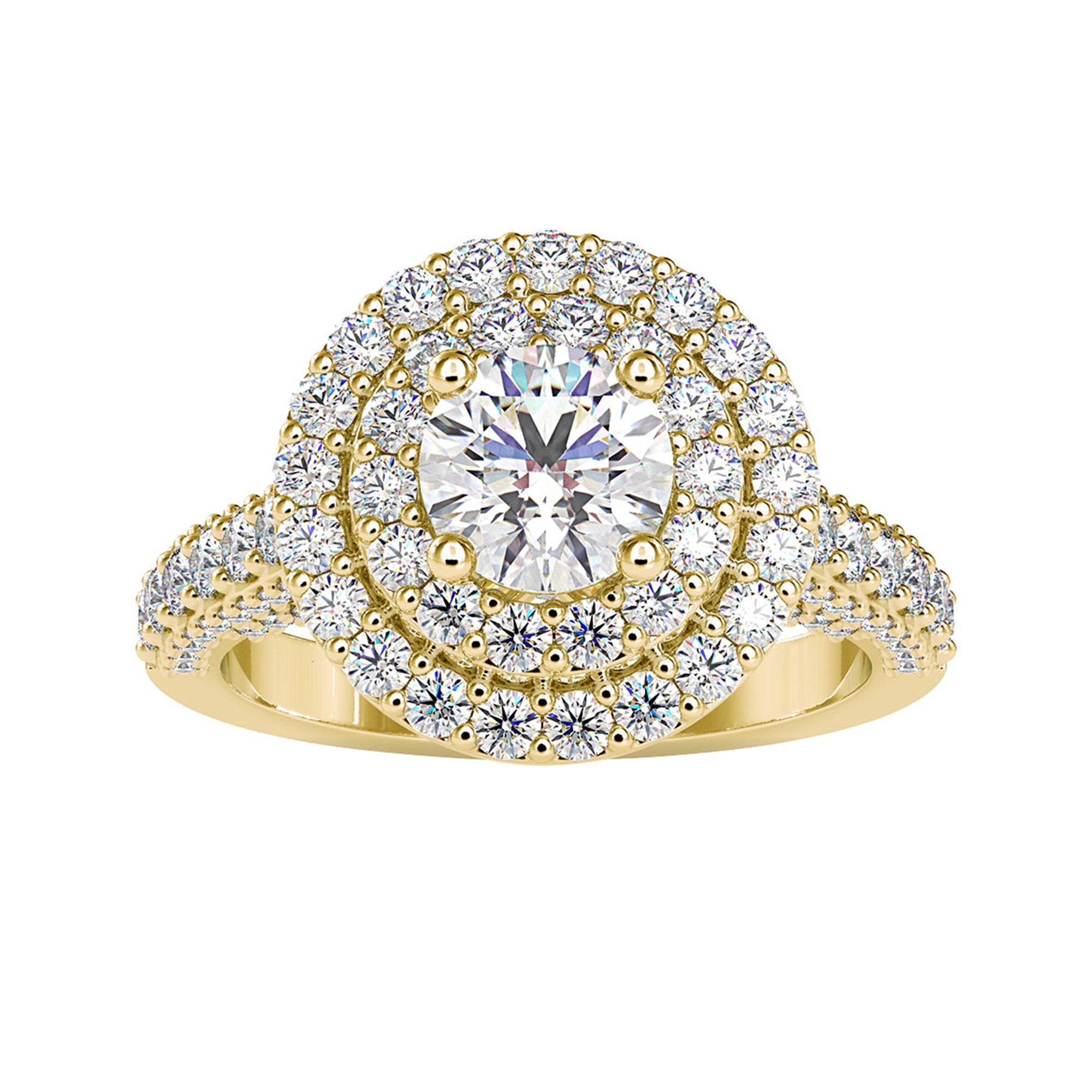 For your unforgettable moment, buy this Cubic Zirconia Engagement Ring. This CZ Ring is embellished by Double Halo and Side Stones, which make this ring look more sumptuous. This Simulated Diamond Engagement Ring is crafted in Gold for alluring charm. This Engagement Ring is unique and it exhibits high brilliance.