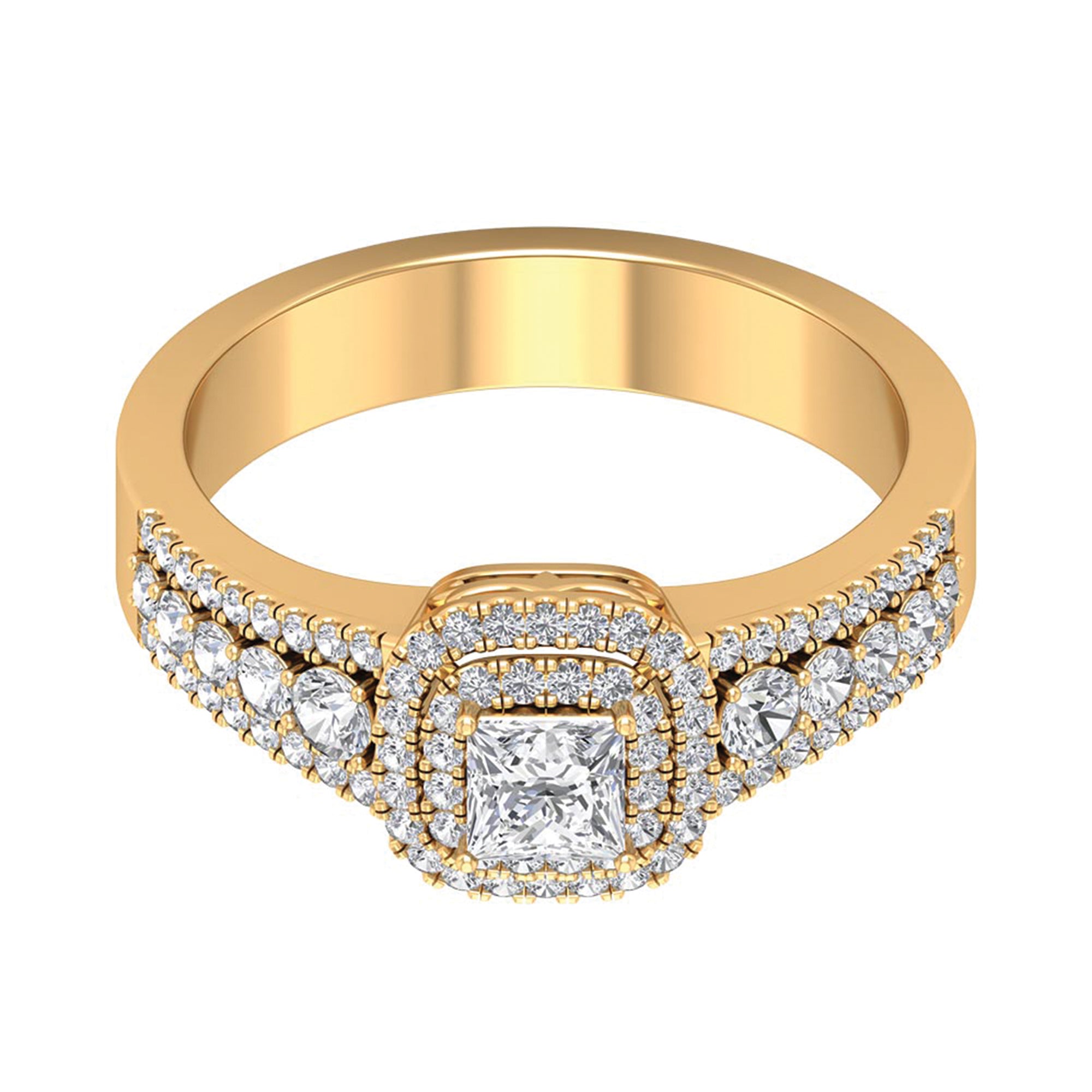 This Vintage Inspired Engagement Ring has a Princess Cut Zircon in Prong Setting in the center with Double Halo makes it a unique and exotic jewelry.